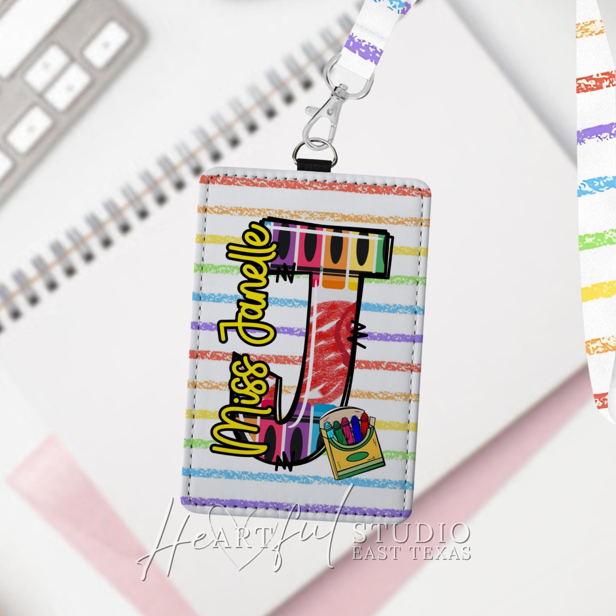Keep your teacher ID secure and stylish with this Personalized Crayon Doodle Initial Teacher ID Holder. Featuring a vibrant crayon design and customizable initial, it adds a fun, personal touch to your daily essentials. Durable and easy to attach, it ensures your ID is always visible and accessible, making it perfect for busy educators who want both practicality and personality in one accessory.