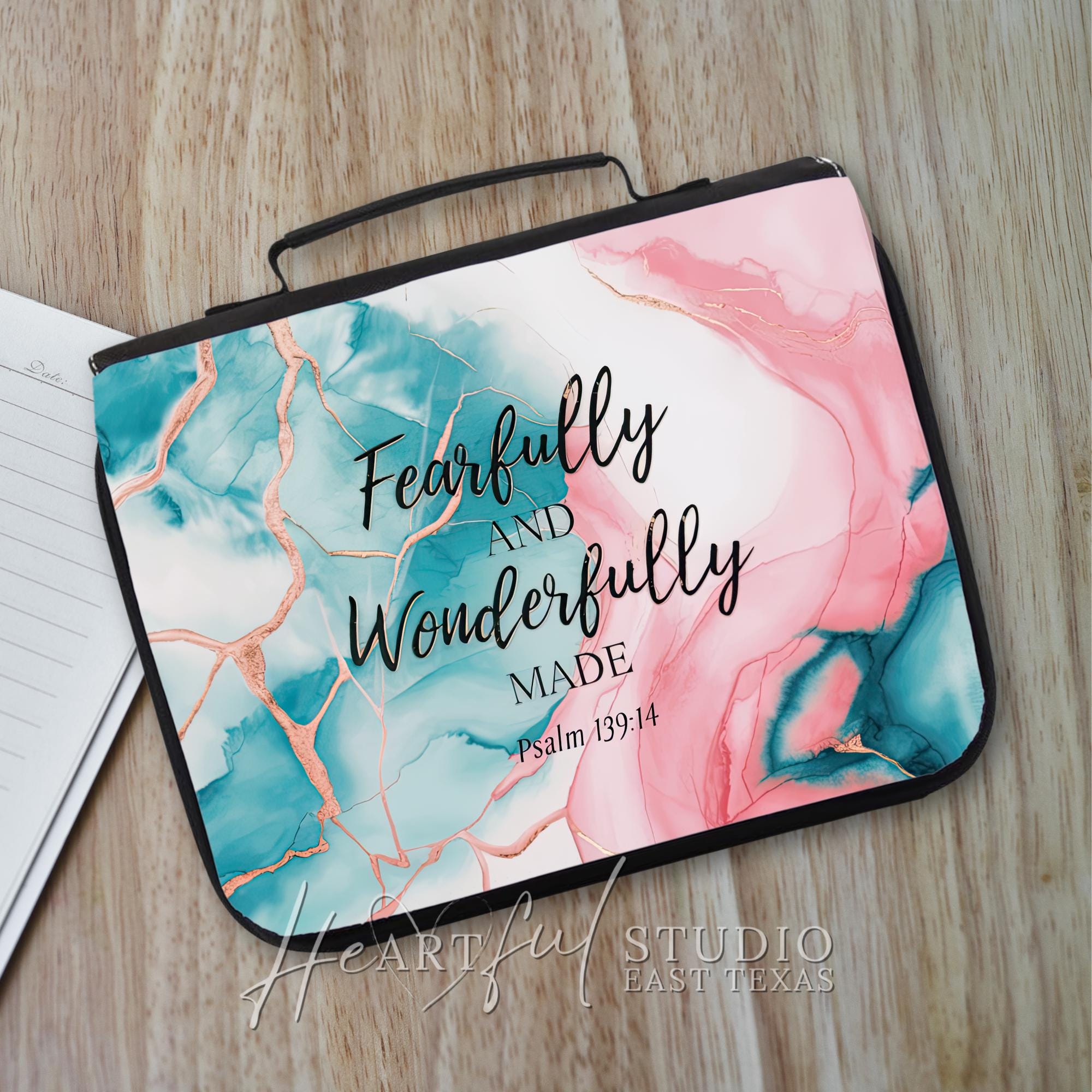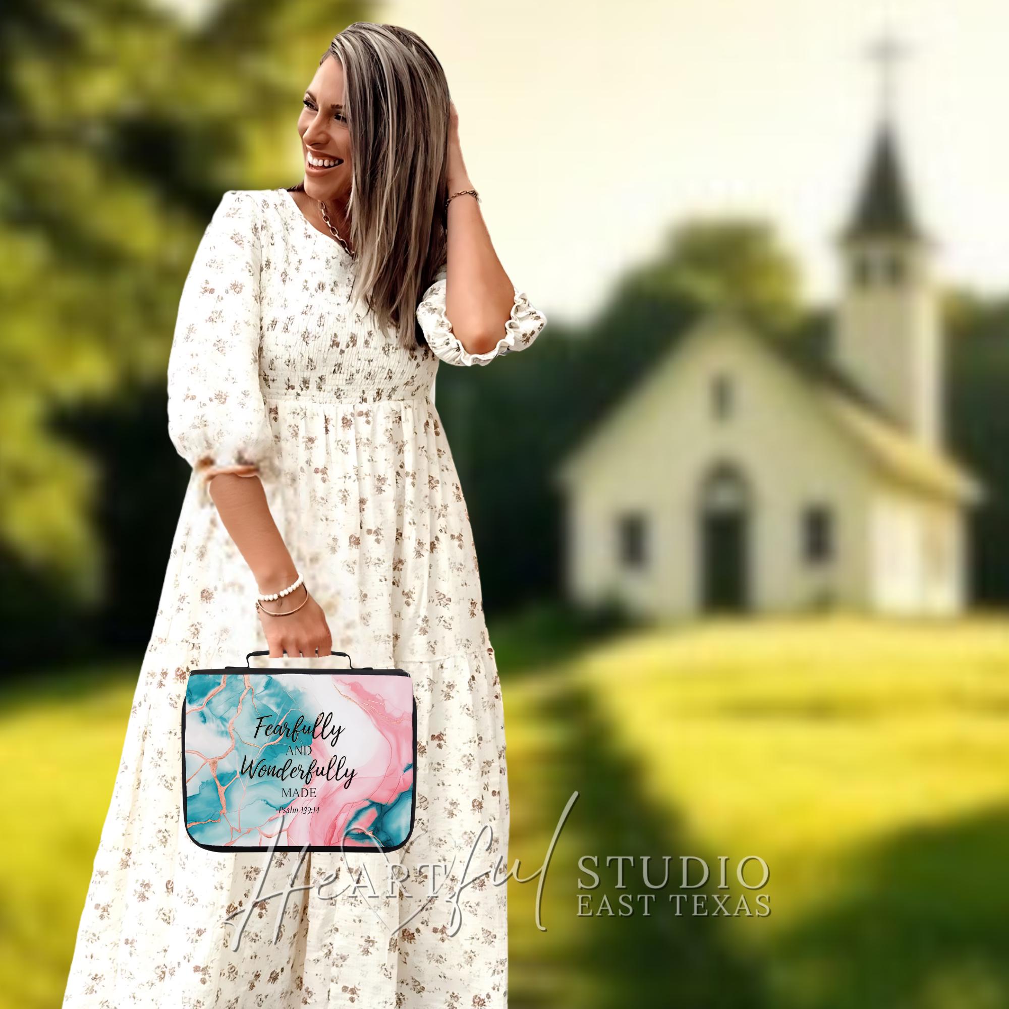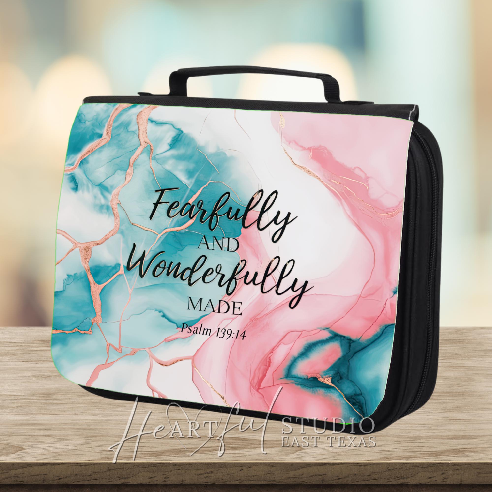 Whether treating yourself or finding the perfect gift, the "Fearfully & Wonderfully Made" Bible Case is a beautiful way to honor your faith and keep your spiritual practice organized. Elevate your devotional time and stay prepared with this functional, stylish case.