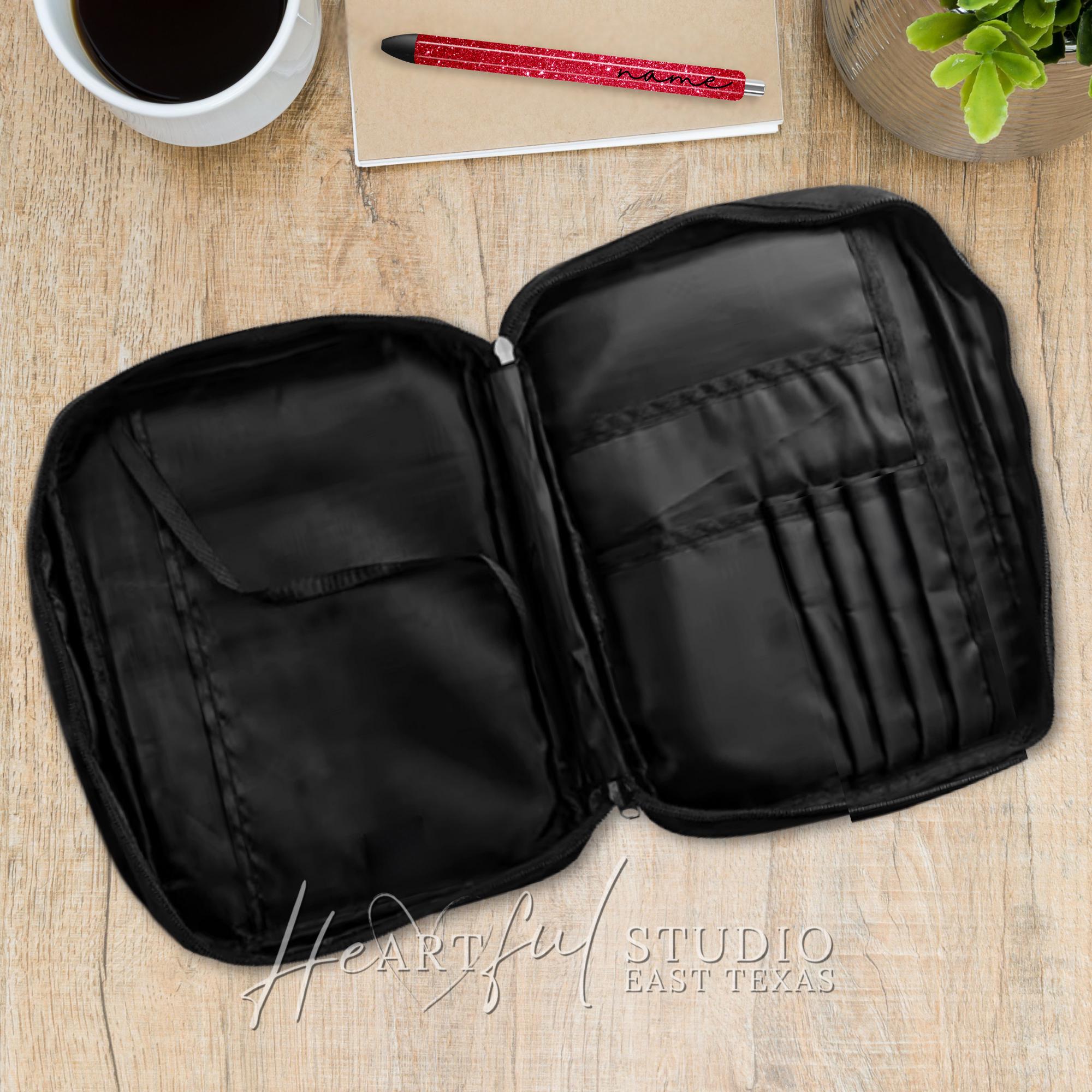 Elevate your daily devotions with the "Fearfully & Wonderfully Made" Bible Case. Crafted with care, this stunning case features an outside pocket, pen slots, and multiple interior pockets to keep your Bible, journal, and other essentials organized and within reach. Pair it with our coordinating journals and glitter pens for a cohesive, faith-filled look. Personalize it for a thoughtful, one-of-a-kind gift.