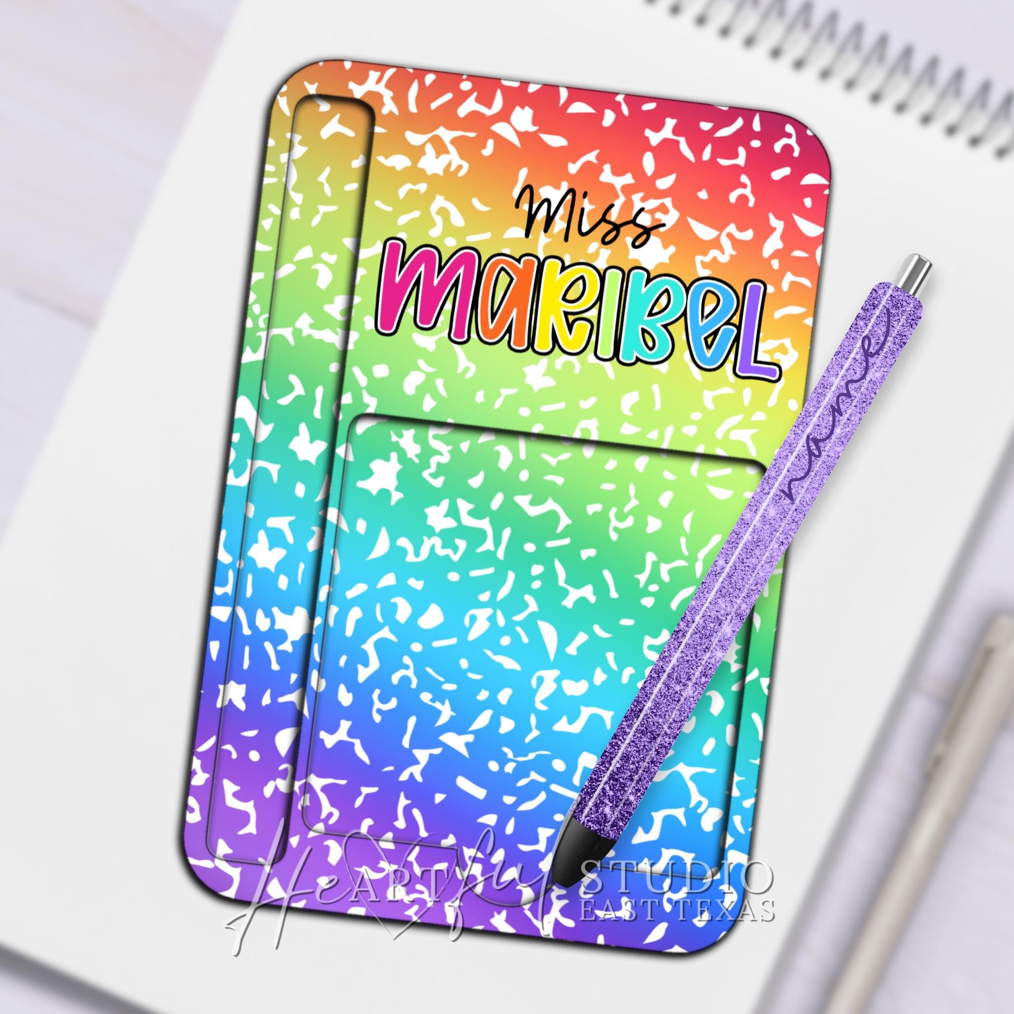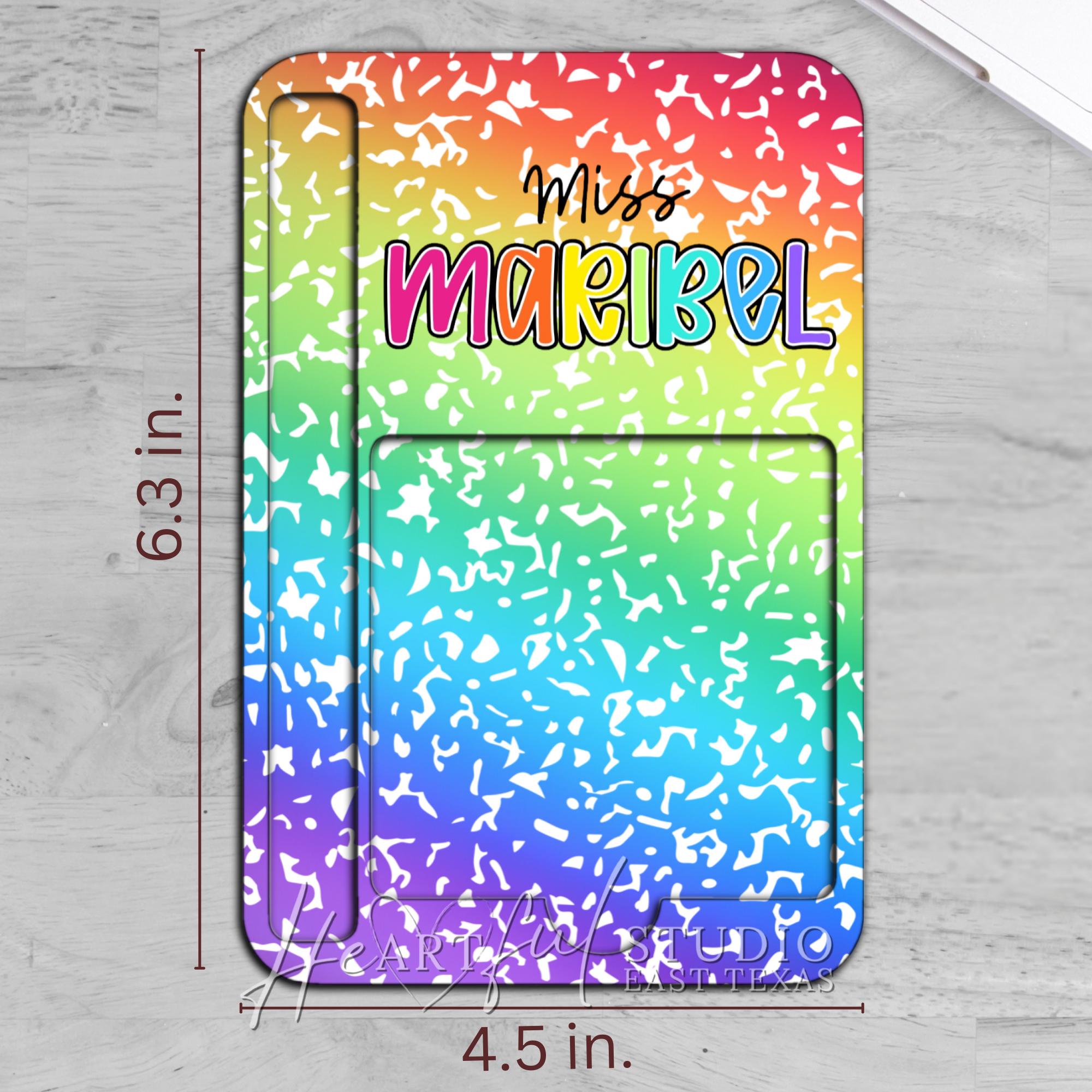 Elevate your desk with this eye-catching Personalized Rainbow Composition Sticky Note Holder!