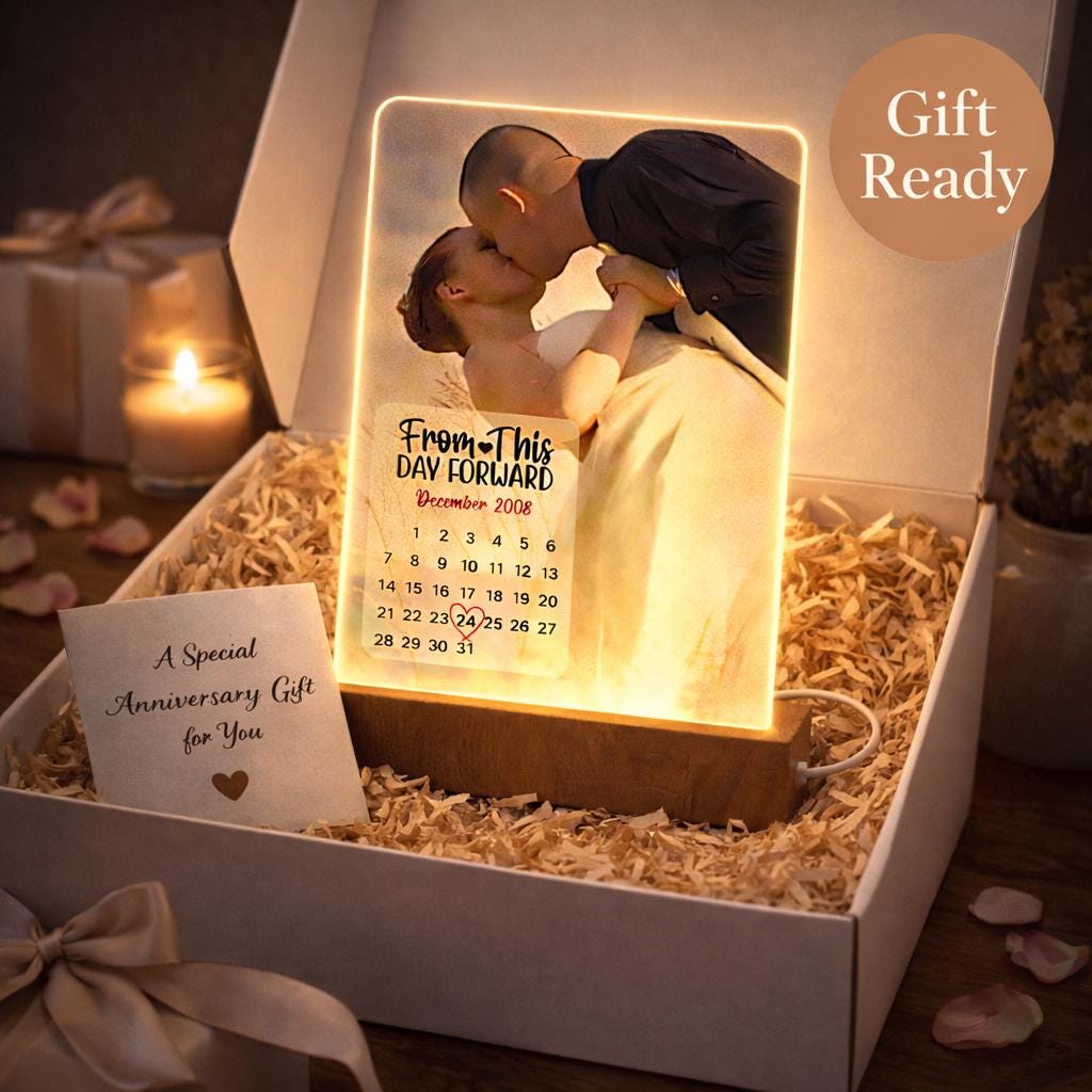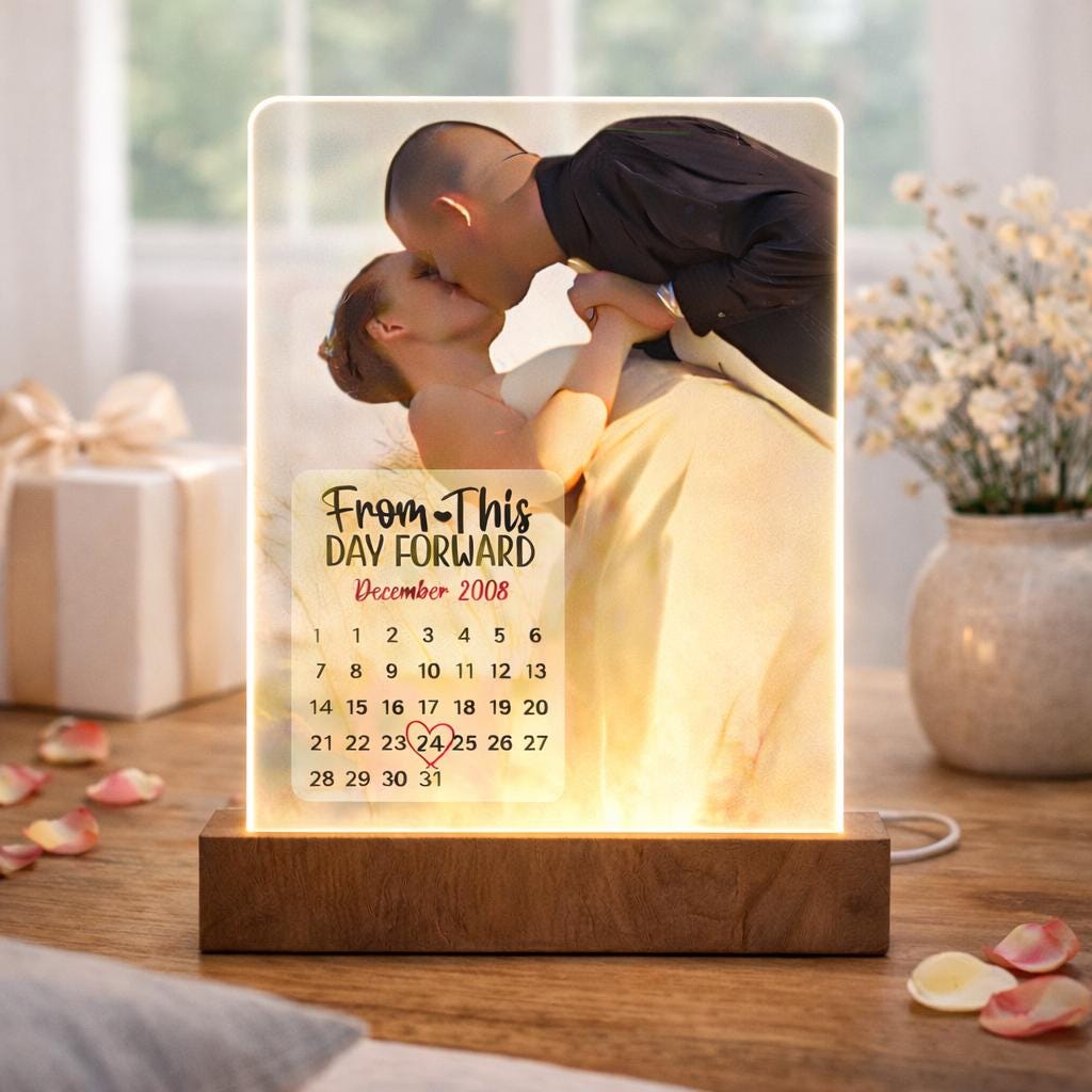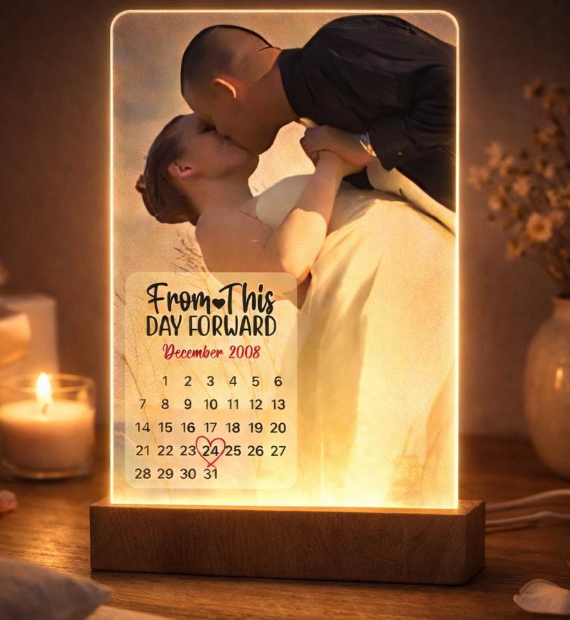 Celebrate the moment that changed everything. This personalized illuminated photo keepsake captures your exact date, your favorite photo, and the promise you made — glowing softly as a timeless reminder of love.