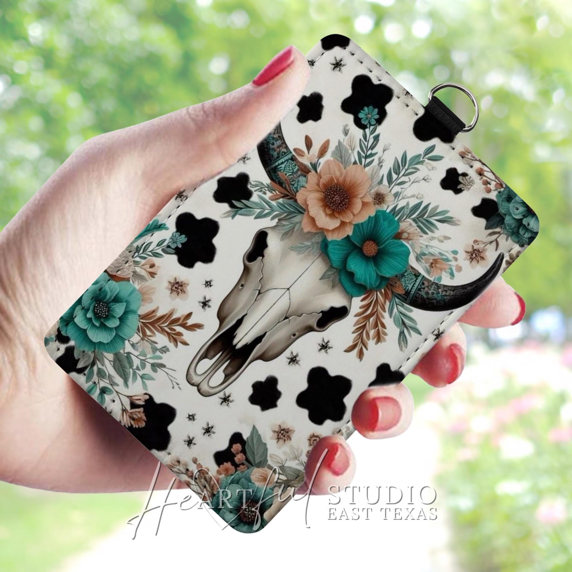 Show off your wild side with the Western Cow Skull Card Wallet. Featuring a bold, playful design inspired by the rugged West, this compact wallet keeps your cards organized while adding a touch of adventurous flair. Perfect for those who love a fun accessory with a bit of edge.