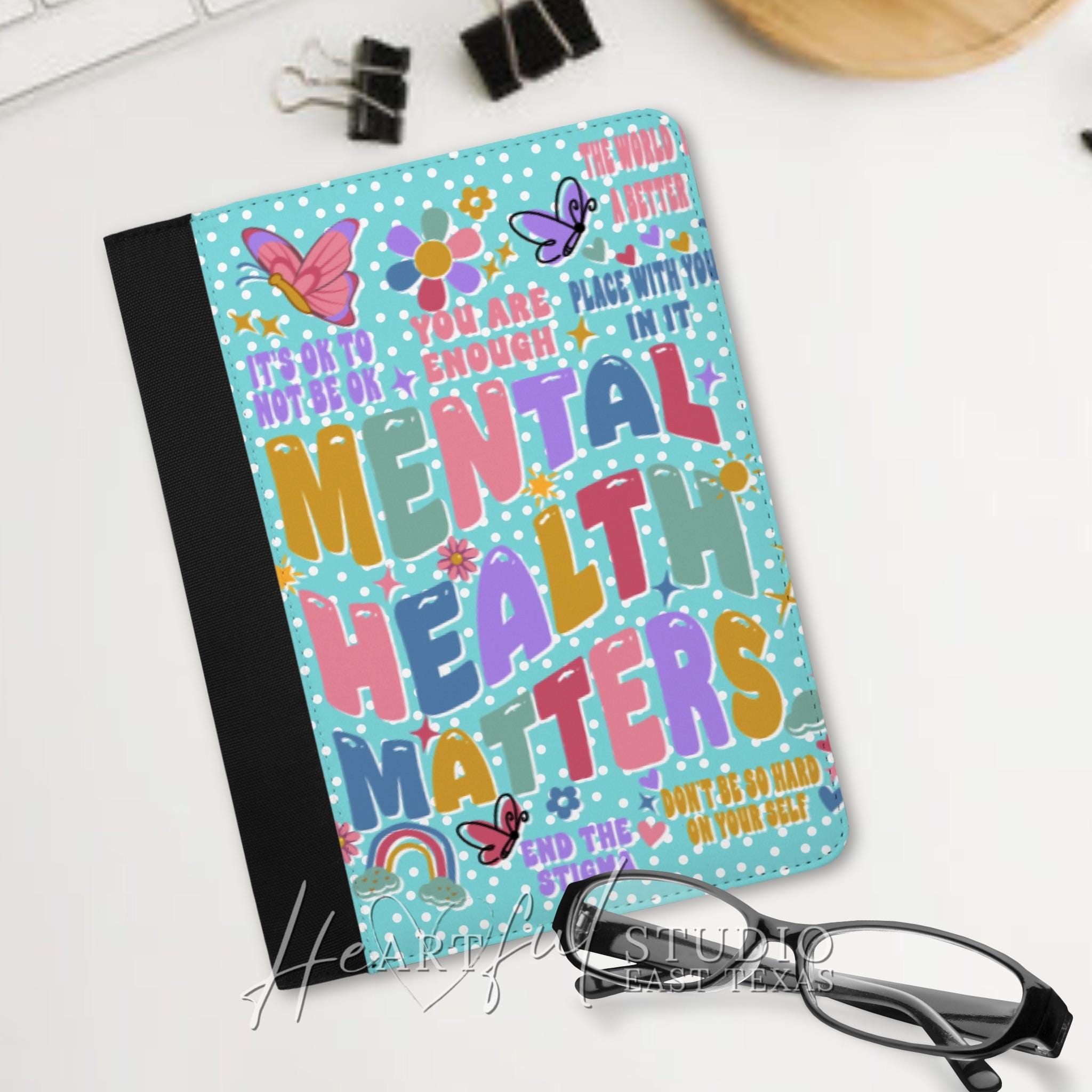 Show off your passion for mental health awareness with our Mental Health Matters Padfolio! This stylish and functional padfolio not only keeps your important documents organized, but also shows your support for this important cause. Make a statement and stay organized with our padfolio.