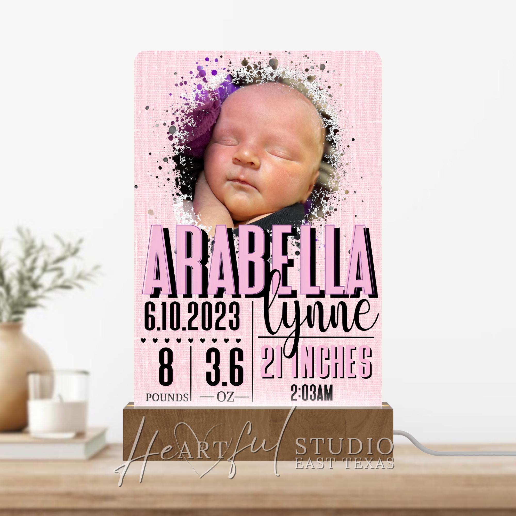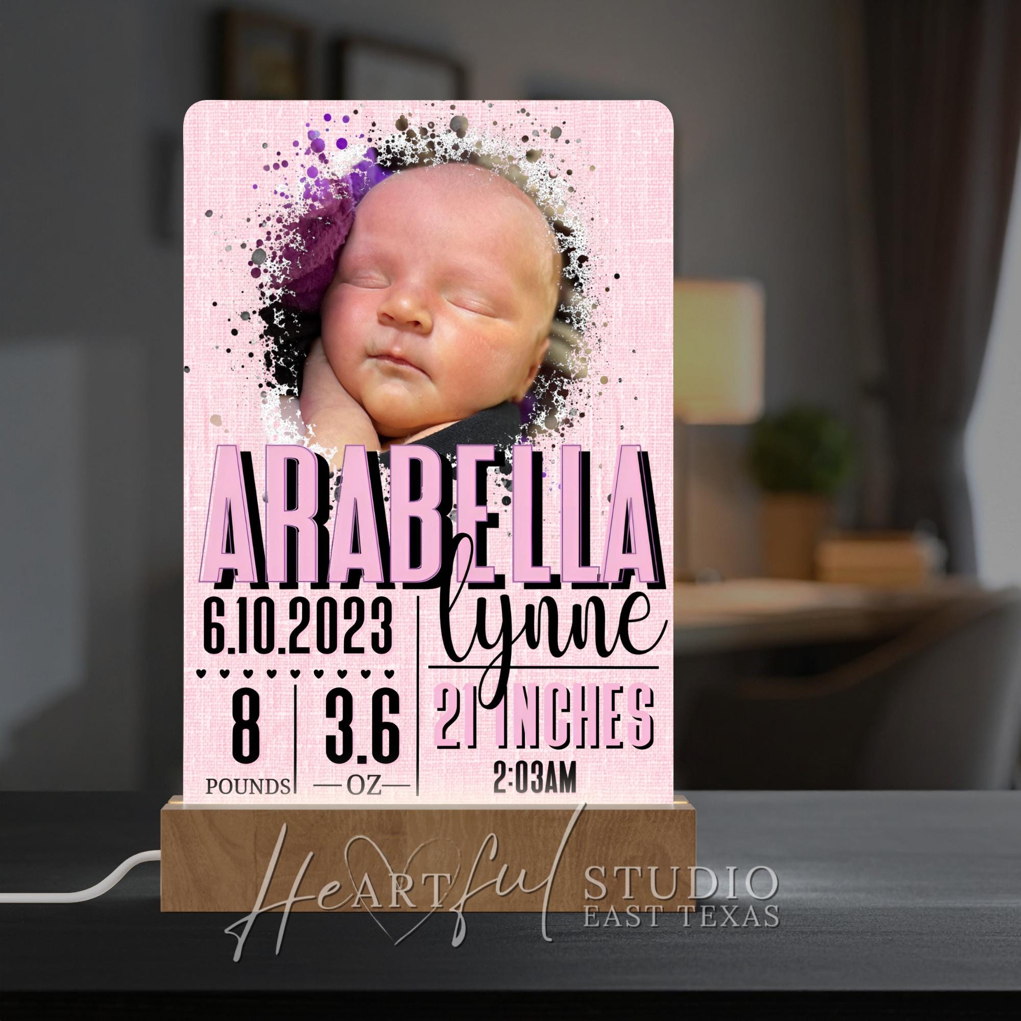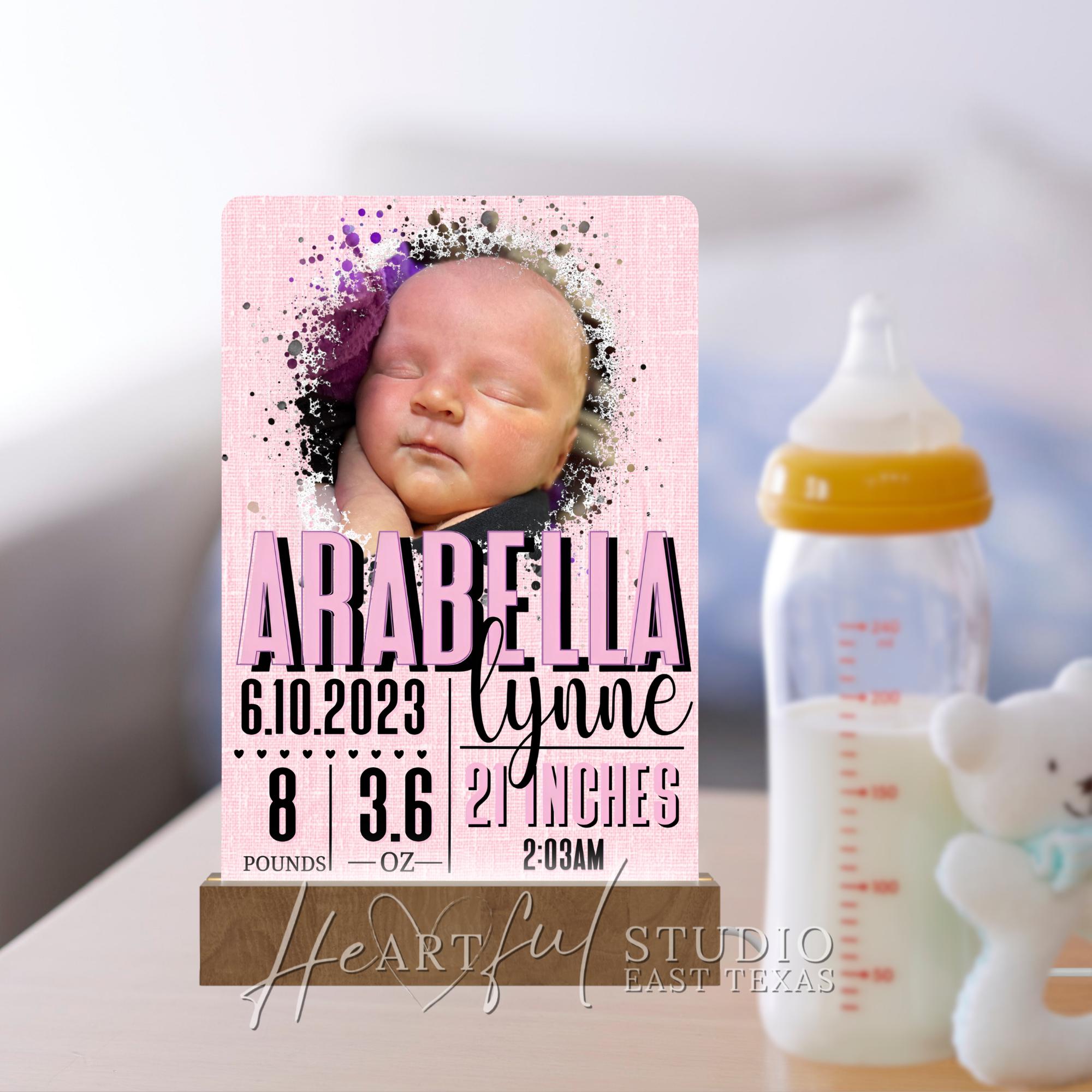 Celebrate your little one's arrival with the perfect personalized keepsake - the Baby Birth Announcement Light Frame. This stunning 6"x8" frame illuminates your newborn's special details in full color, creating a warm, inviting glow that will captivate any nursery.