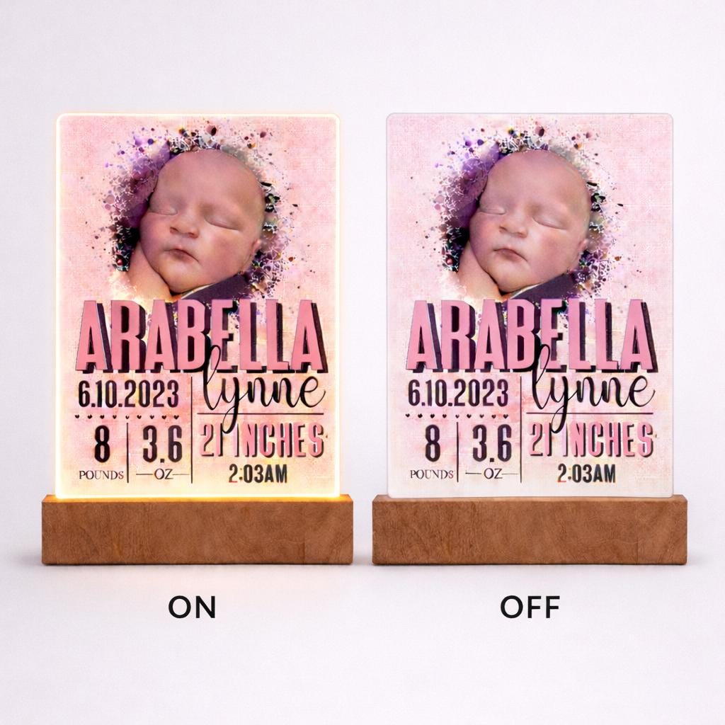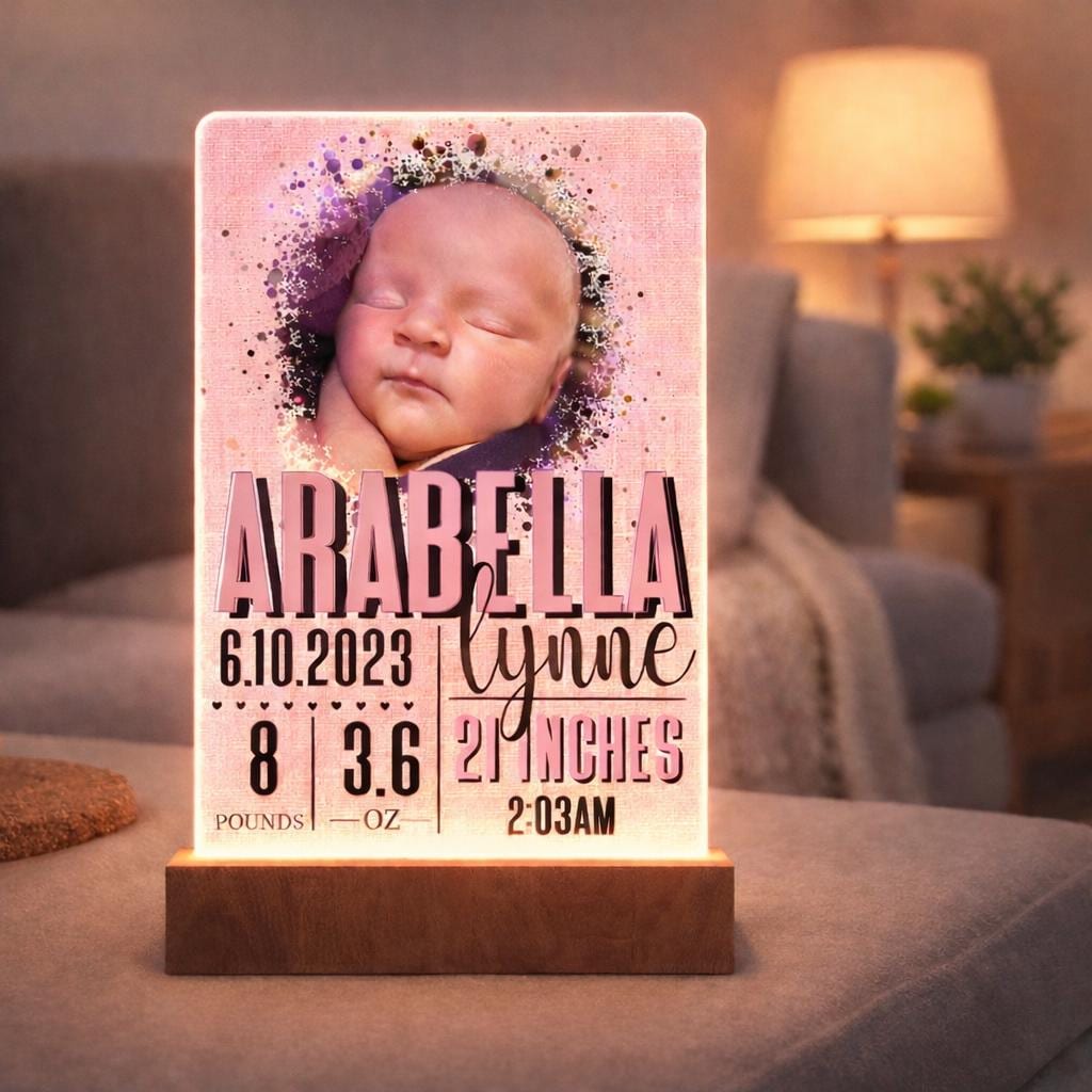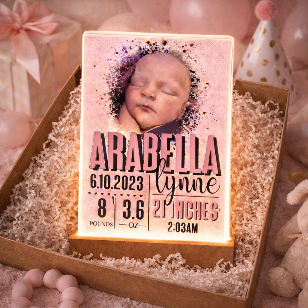 Celebrate the moment your world changed with a beautifully personalized illuminated baby stats acrylic light — a timeless keepsake designed to glow softly in your nursery and heart for years to come.