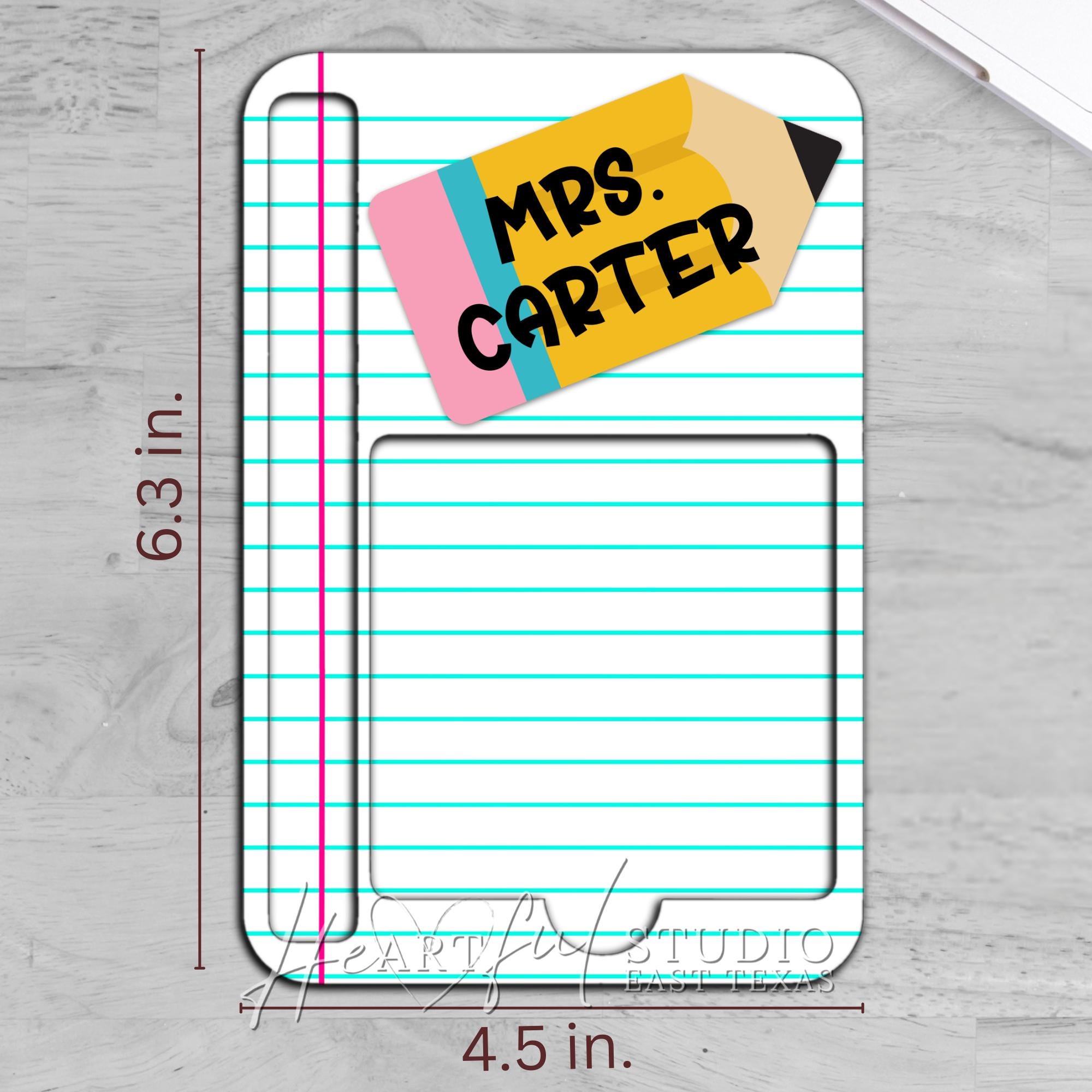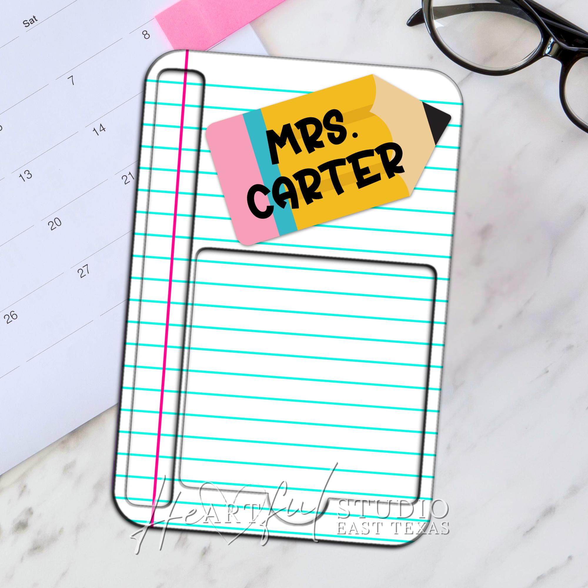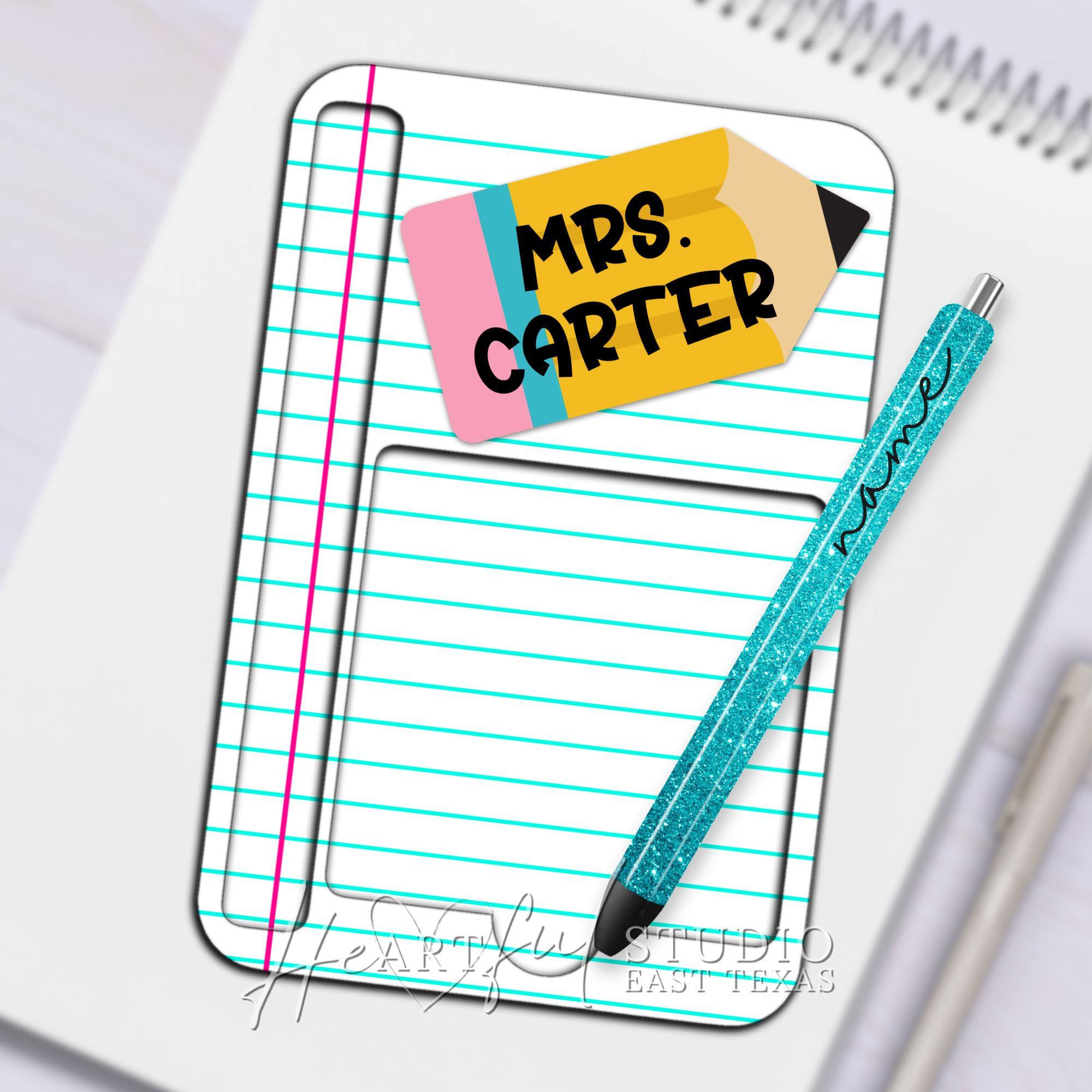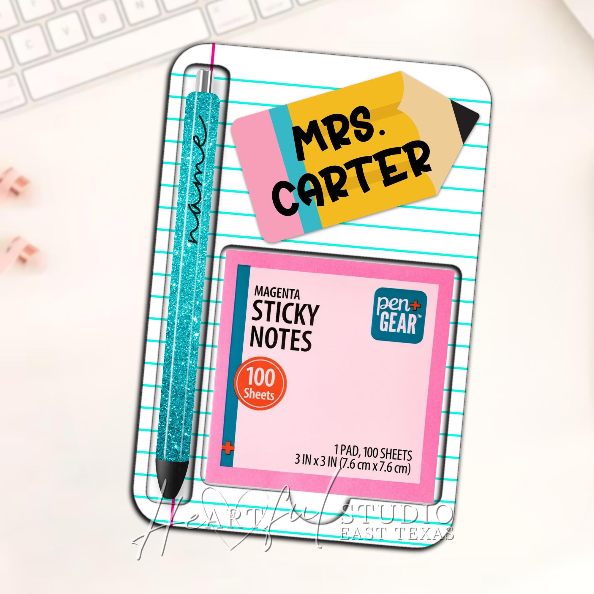 Effortlessly organize your desk with the Personalized Pencil & Paper designed Sticky Note Holder.