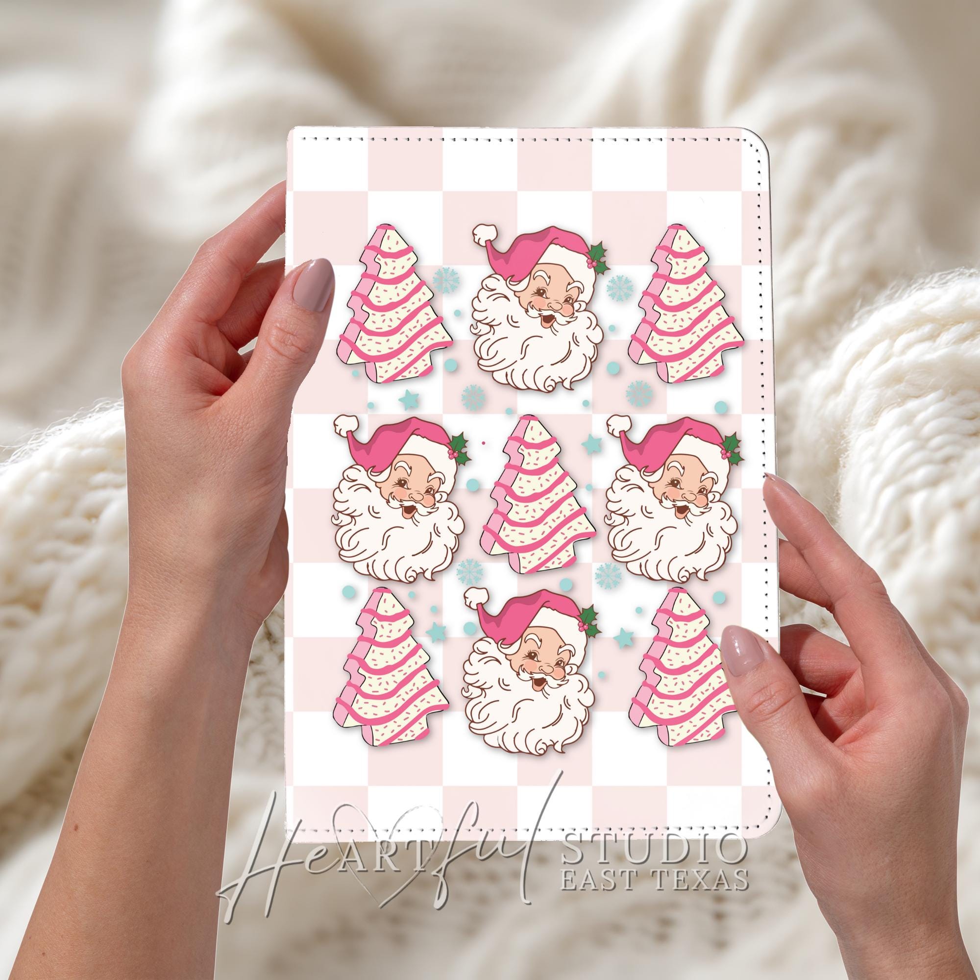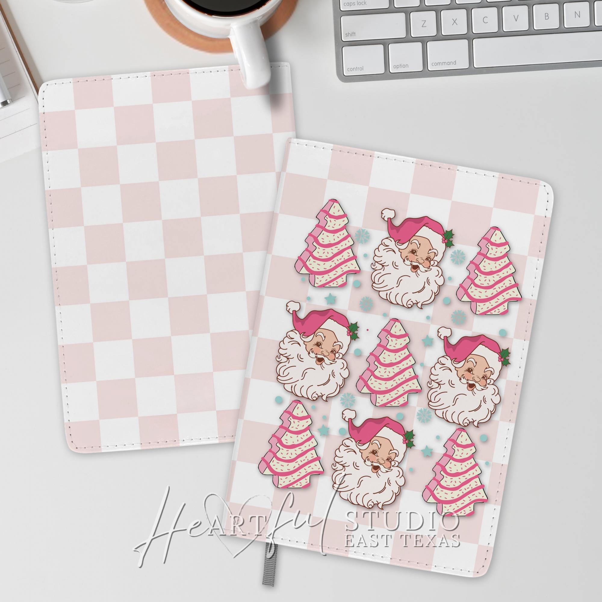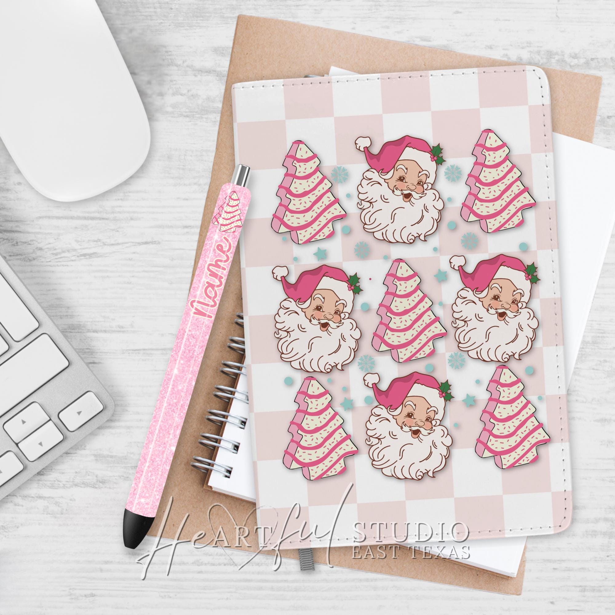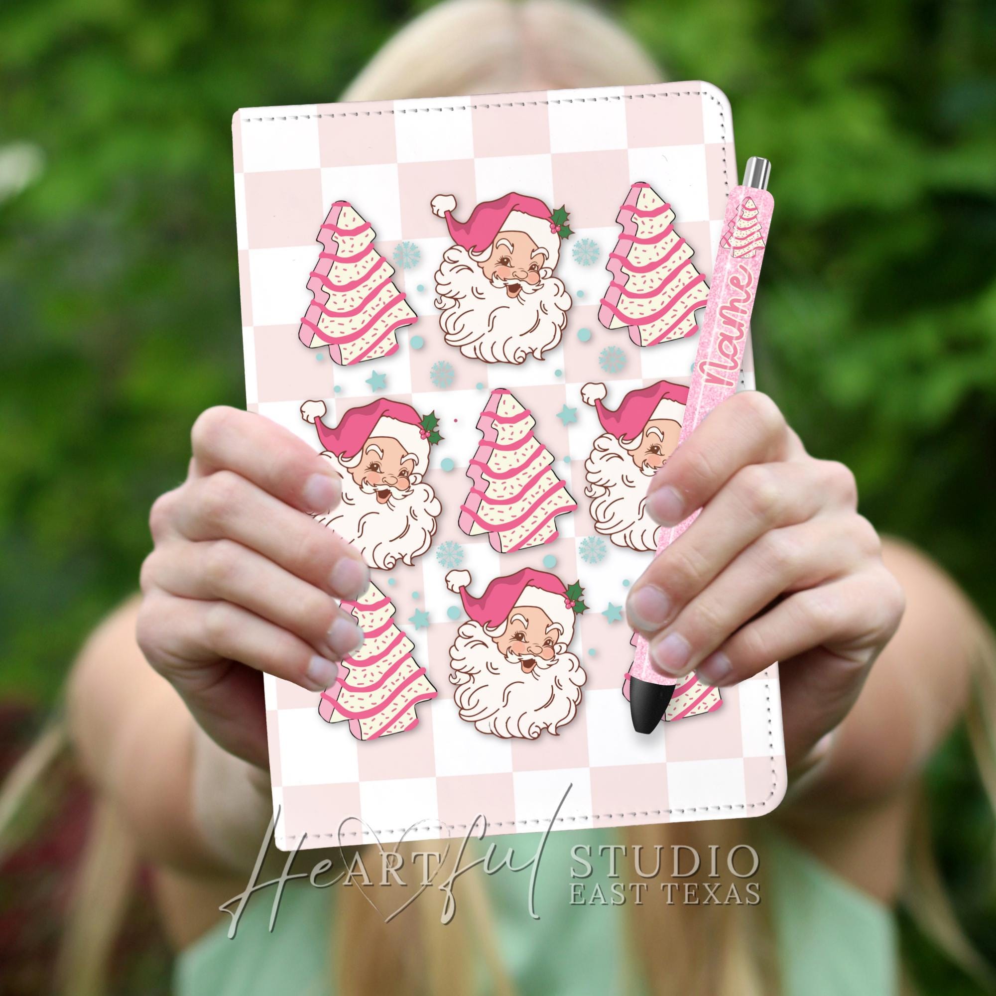 Capture the joy of the holiday season with the Christmas Tree Cakes Journal Notebook. This handmade, personalized diary features a delightful pink cover adorned with a playful Santa and whimsical Christmas tree cakes, making it a festive addition to your stationery collection.