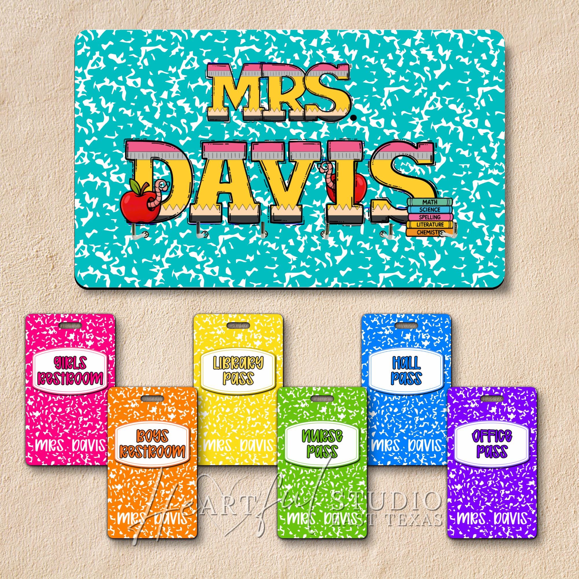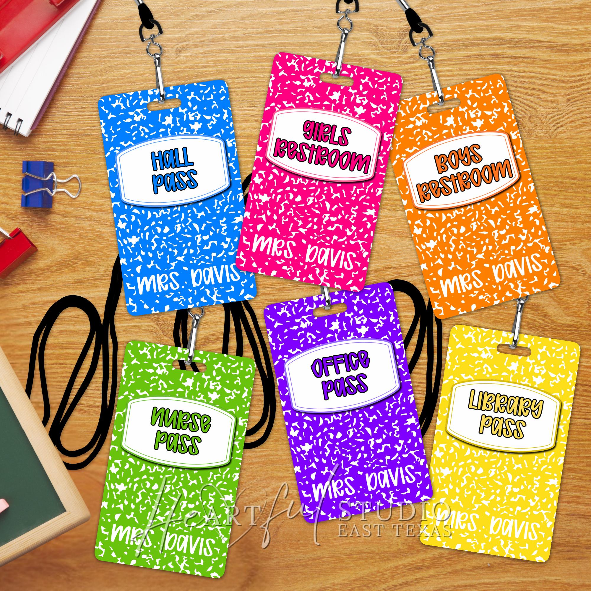 Elevate your classroom management with our Personalized Composition Hall Pass Set! These vibrant, high-quality passes command attention and eliminate lost or forgotten passes.