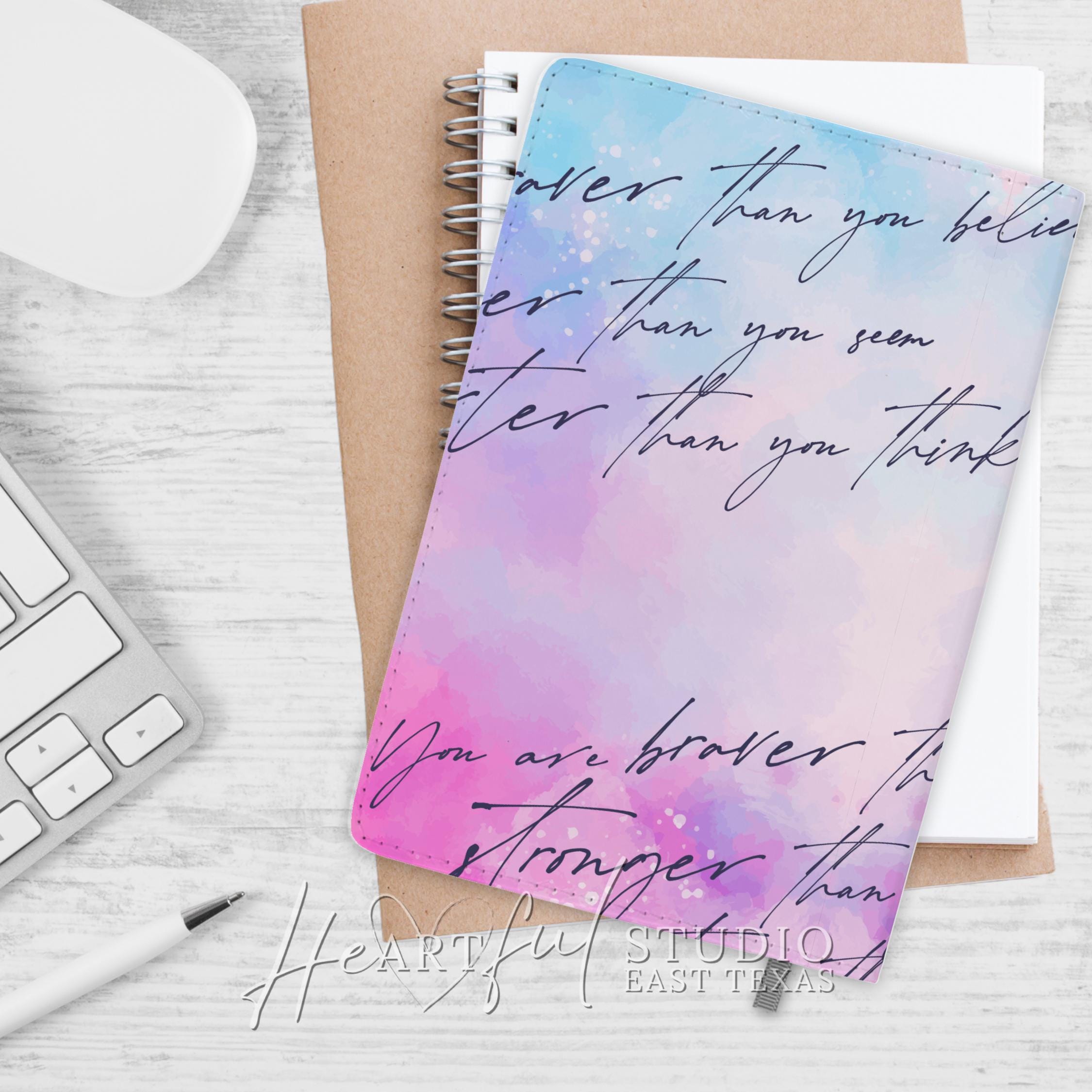Each journal is custom made using the sublimation process, ensuring a vibrant and long-lasting design with a smooth faux leather finish.