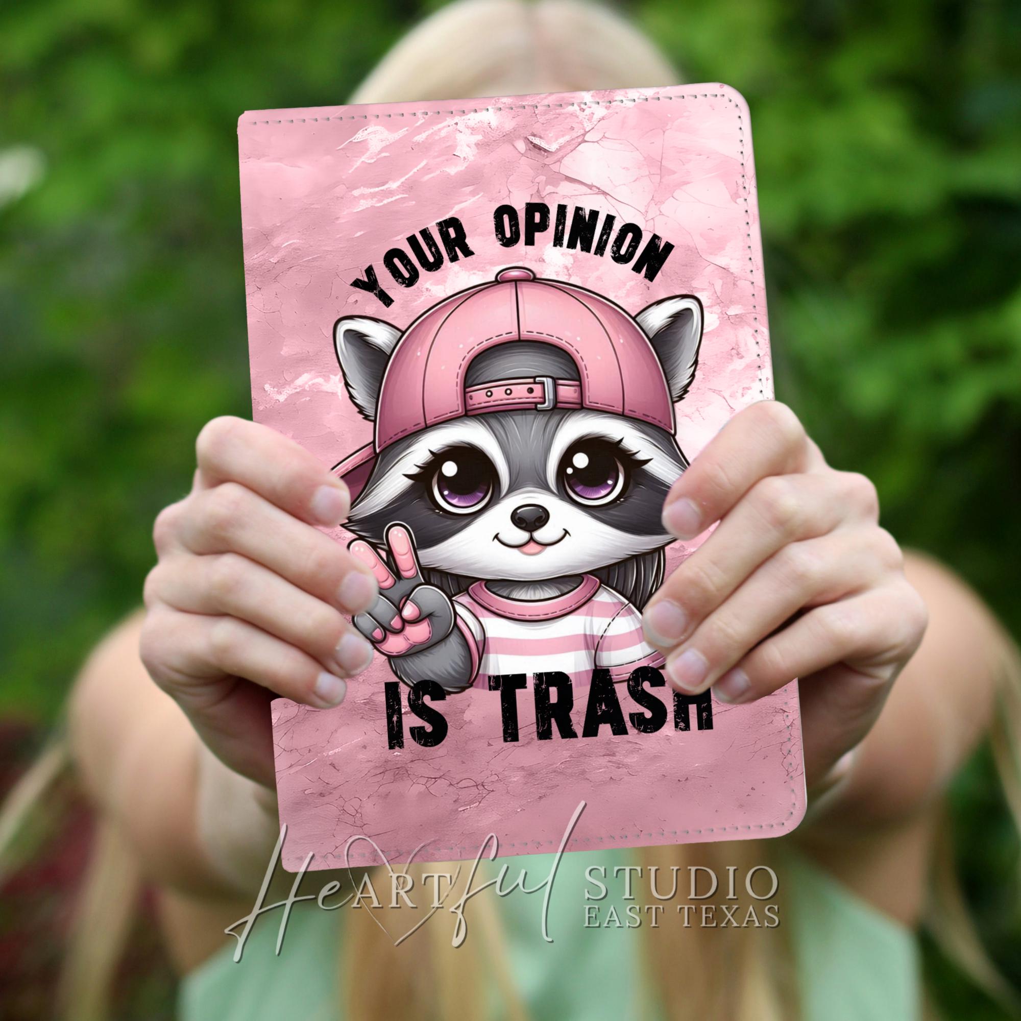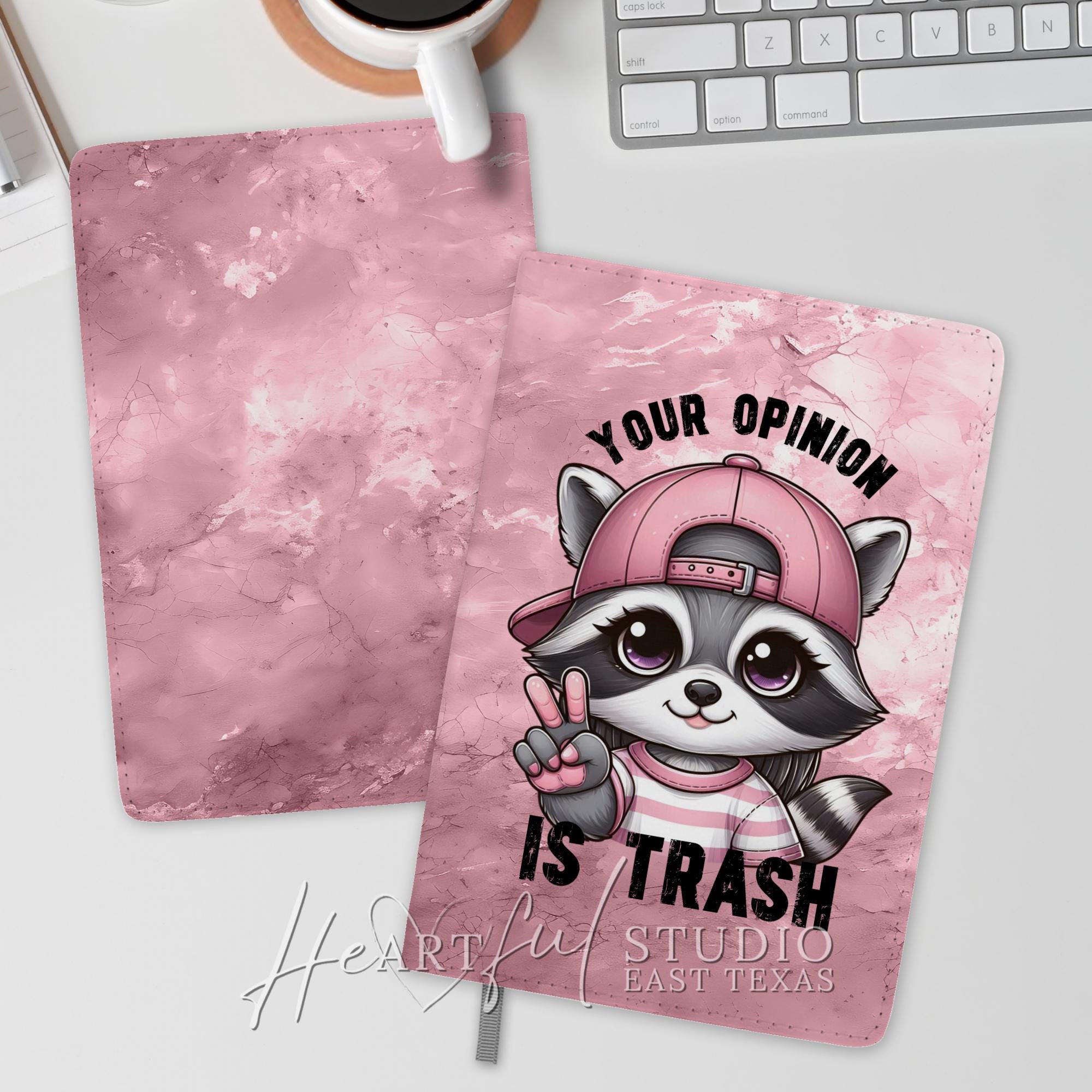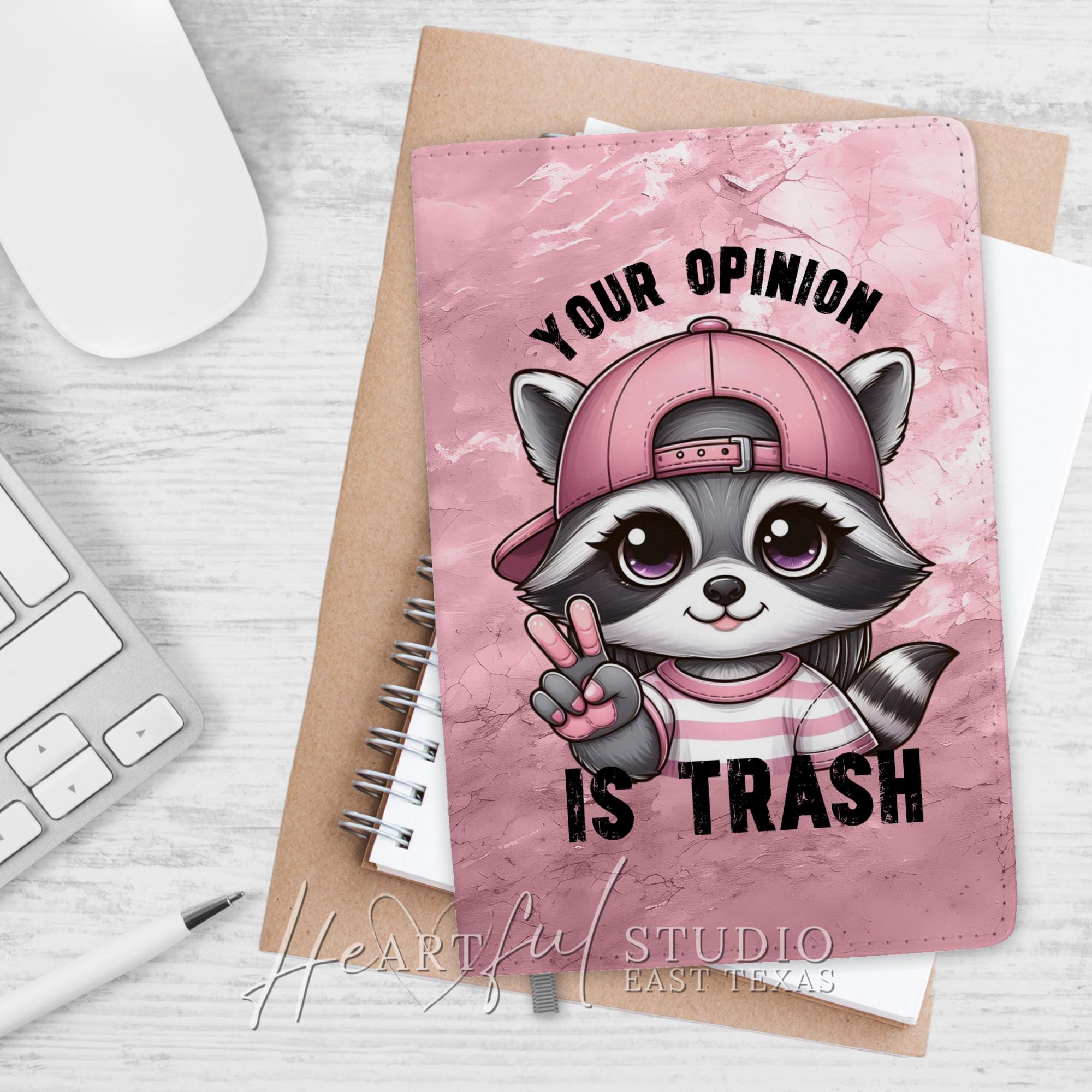 Express your deepest thoughts with the Your Opinion is Trash Journal Notebook. Perfect for unleashing your inner sarcasm and filling up with all the ridiculous opinions you come across. This notebook features a raccoon design, because nothing says "trash" like a pesky trash panda.