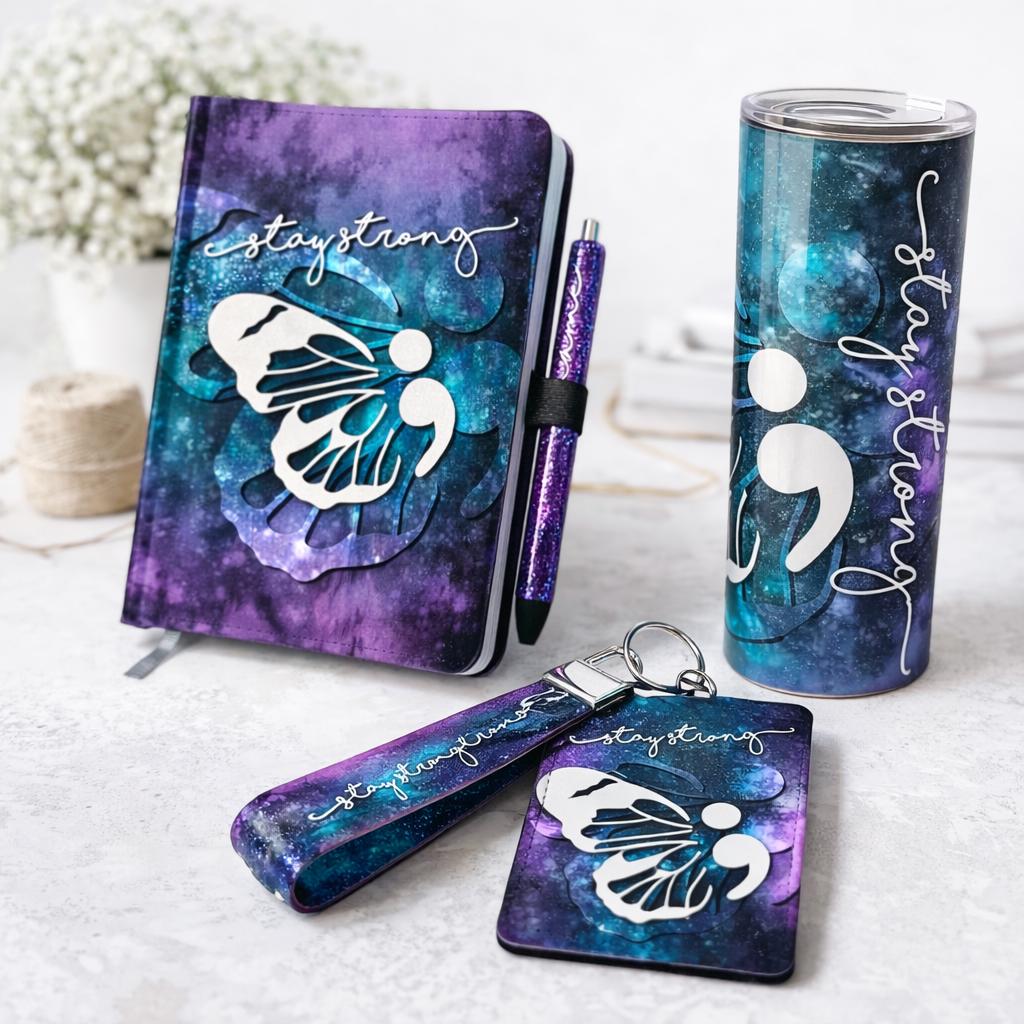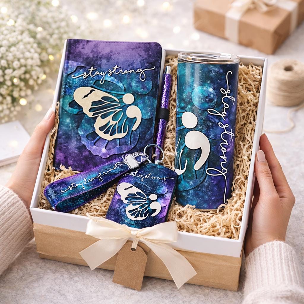 This handmade-from-scratch gift set features the semicolon butterfly design, a widely recognized symbol of suicide awareness, mental health advocacy, and choosing to continue one’s story. It represents strength, resilience, and hope — a reminder that even when life feels overwhelming, the story isn’t over.