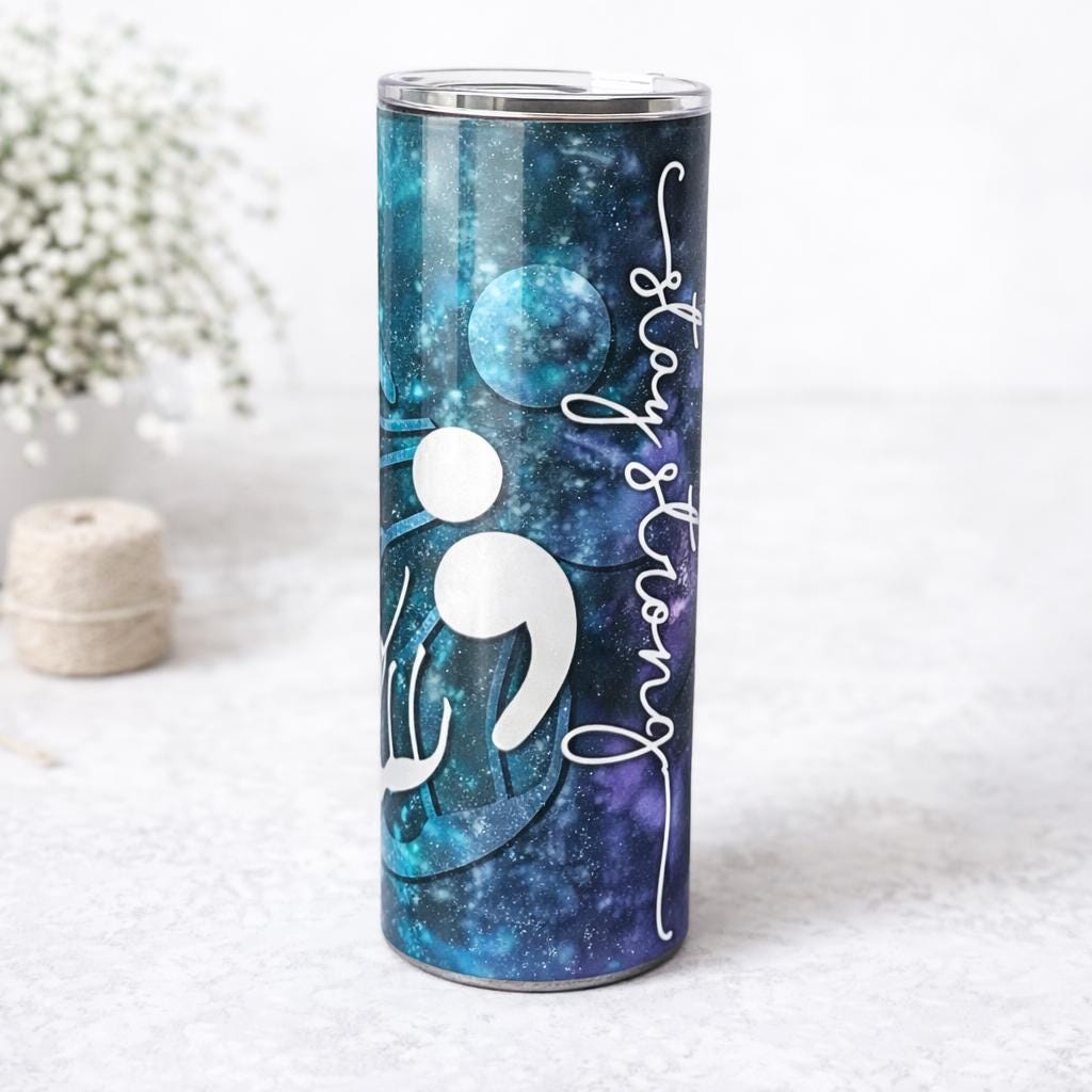 – Features the semicolon butterfly and “stay strong” message