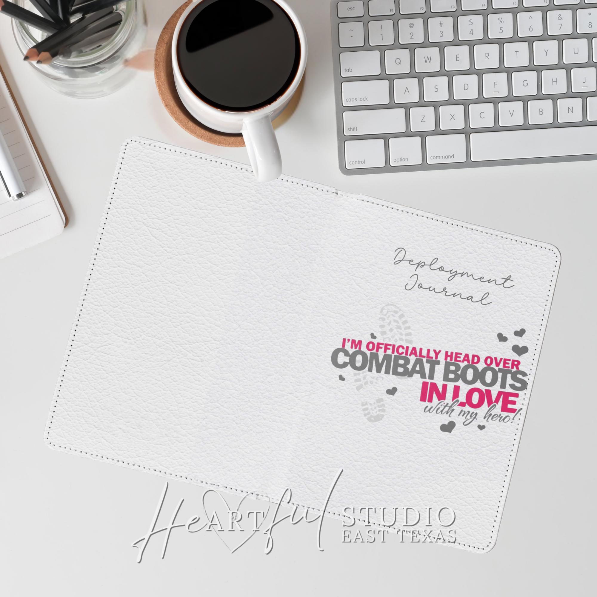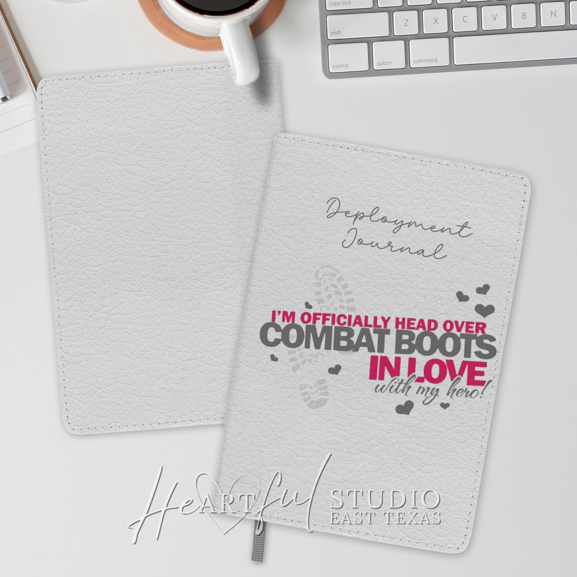 Capture the moments that matter most with the "Head Over Combat Boots In Love with My Hero Deployment Journal". This beautifully designed journal provides the perfect outlet to express your thoughts, feelings, and memories during your loved one's deployment.