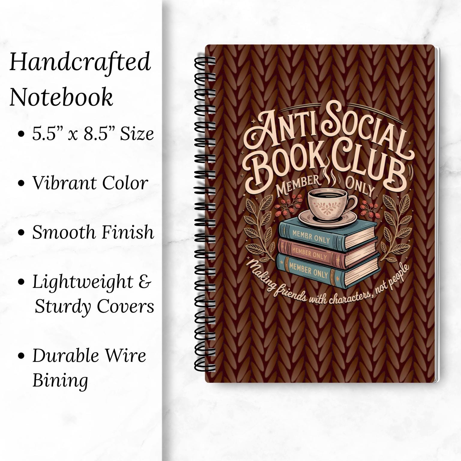 Meet your new favorite reading companion — the Anti-Social Book Club Reading Journal, designed for cozy readers who prefer fictional friends over real-world crowds. 📚☕