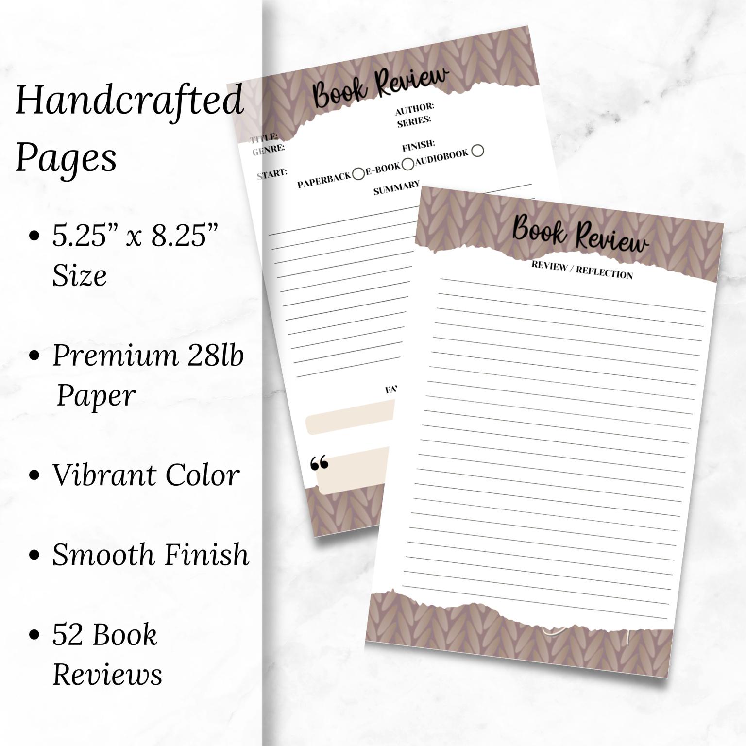 This handmade personalized reading journal helps you track, review, and reflect on every book you finish, creating a beautiful keepsake of your reading journey. With dedicated 52 book review pages and 52 reflection pages, it’s perfect for readers who want to remember favorite quotes, thoughts, and ratings long after the last page.