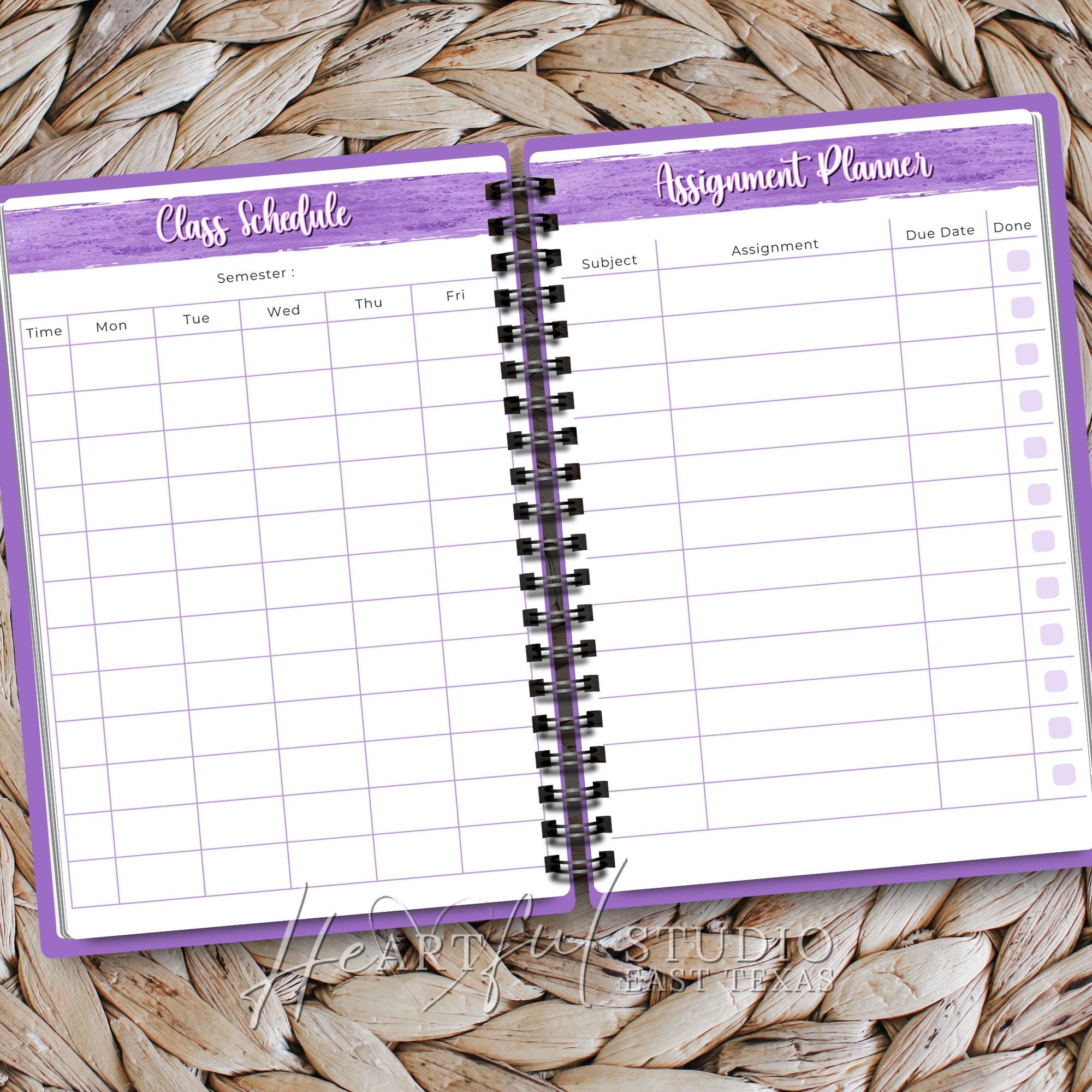 • Detailed class schedule and assignment planning sections