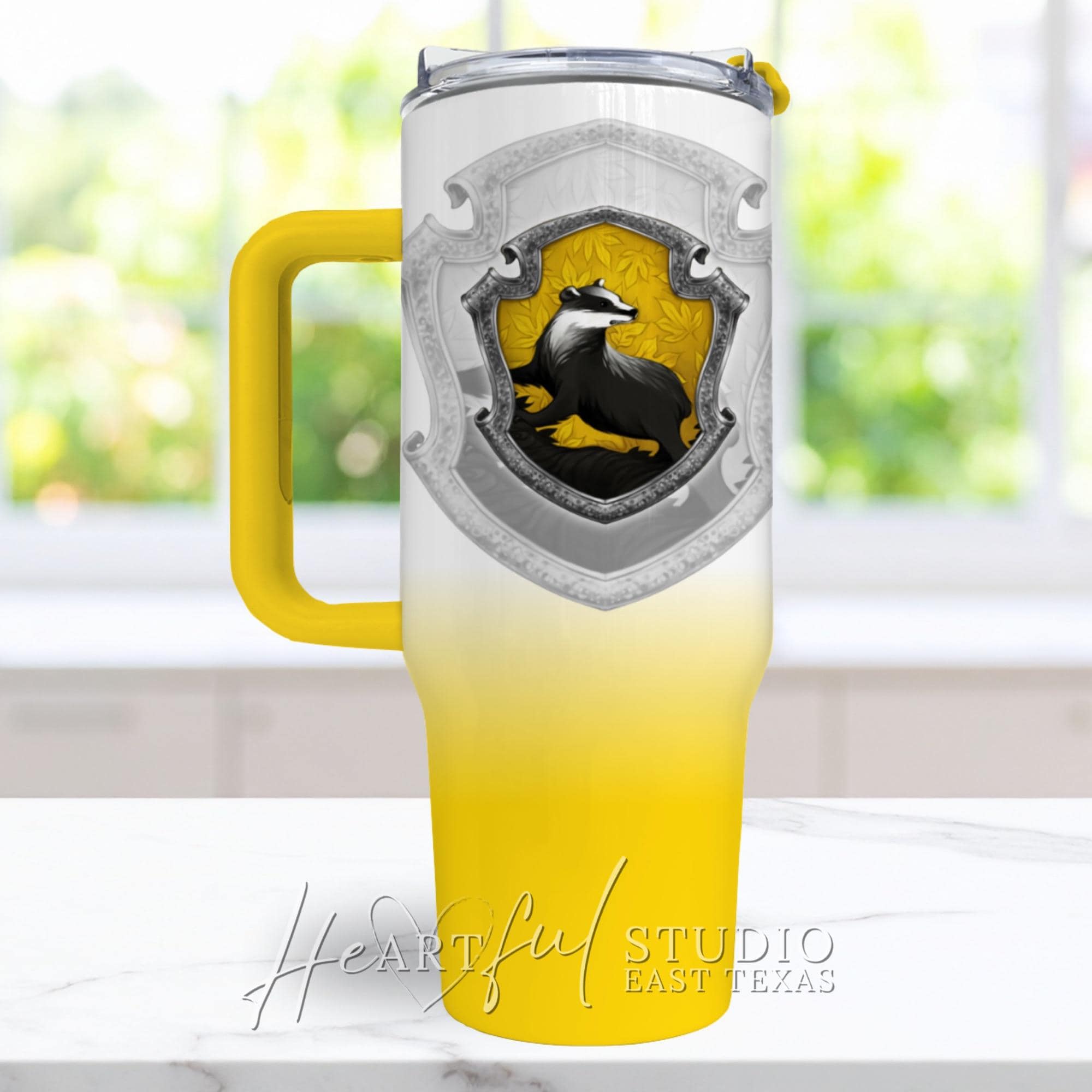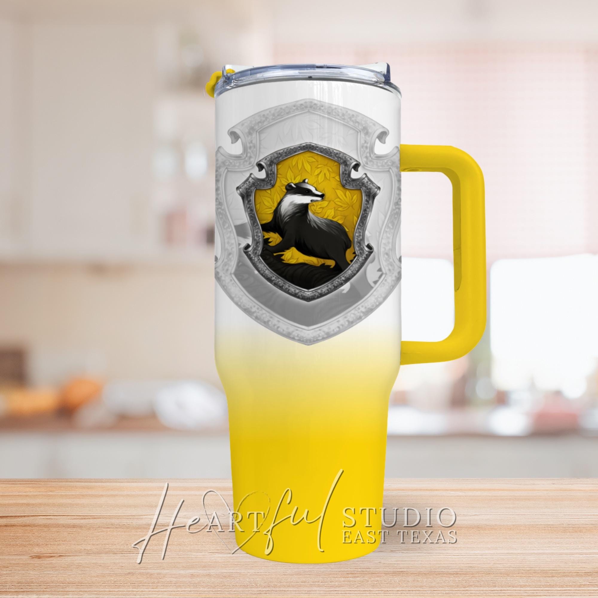 Whether you're rushing to Potions class or cozying up with a good book, this Hufflepuff-inspired tumbler will be your constant companion. Bring a touch of Hogwarts charm to your everyday with this spellbinding creation.