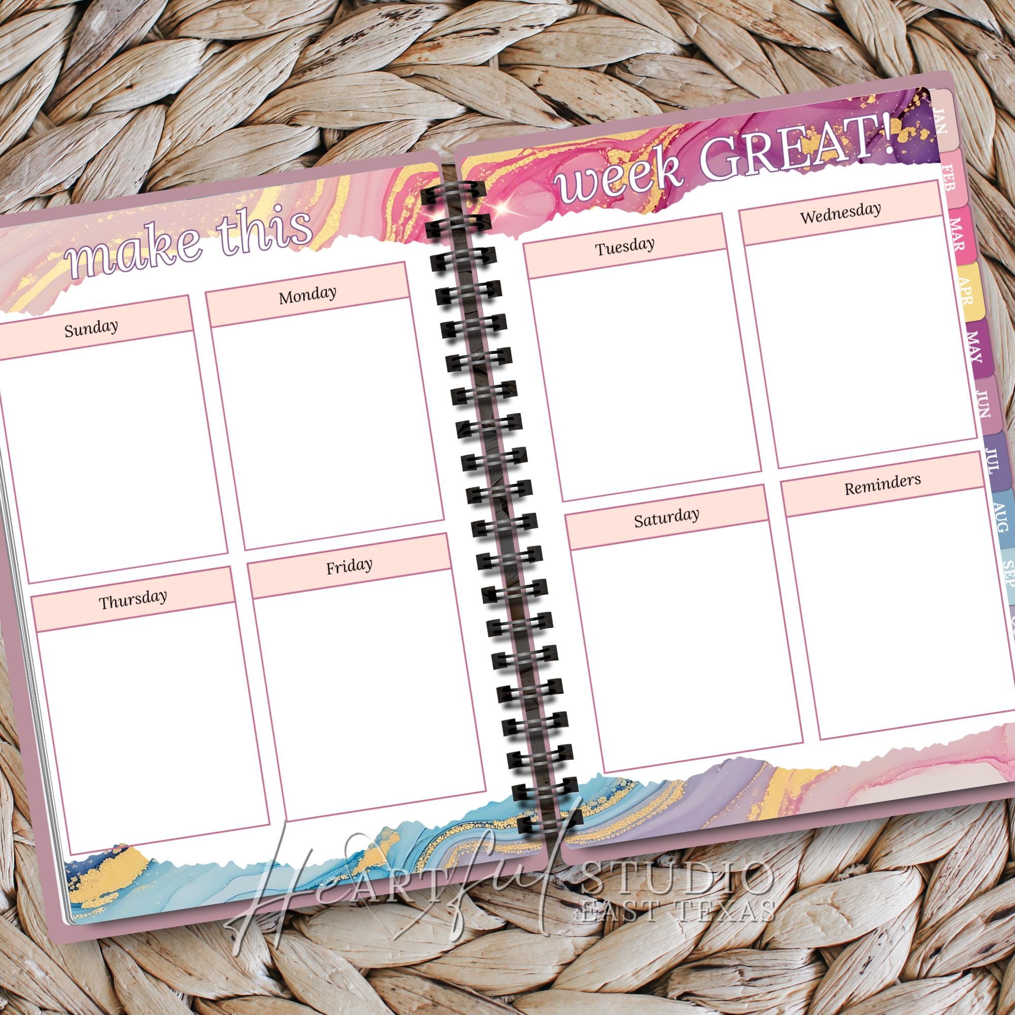 • 52 weekly planning pages