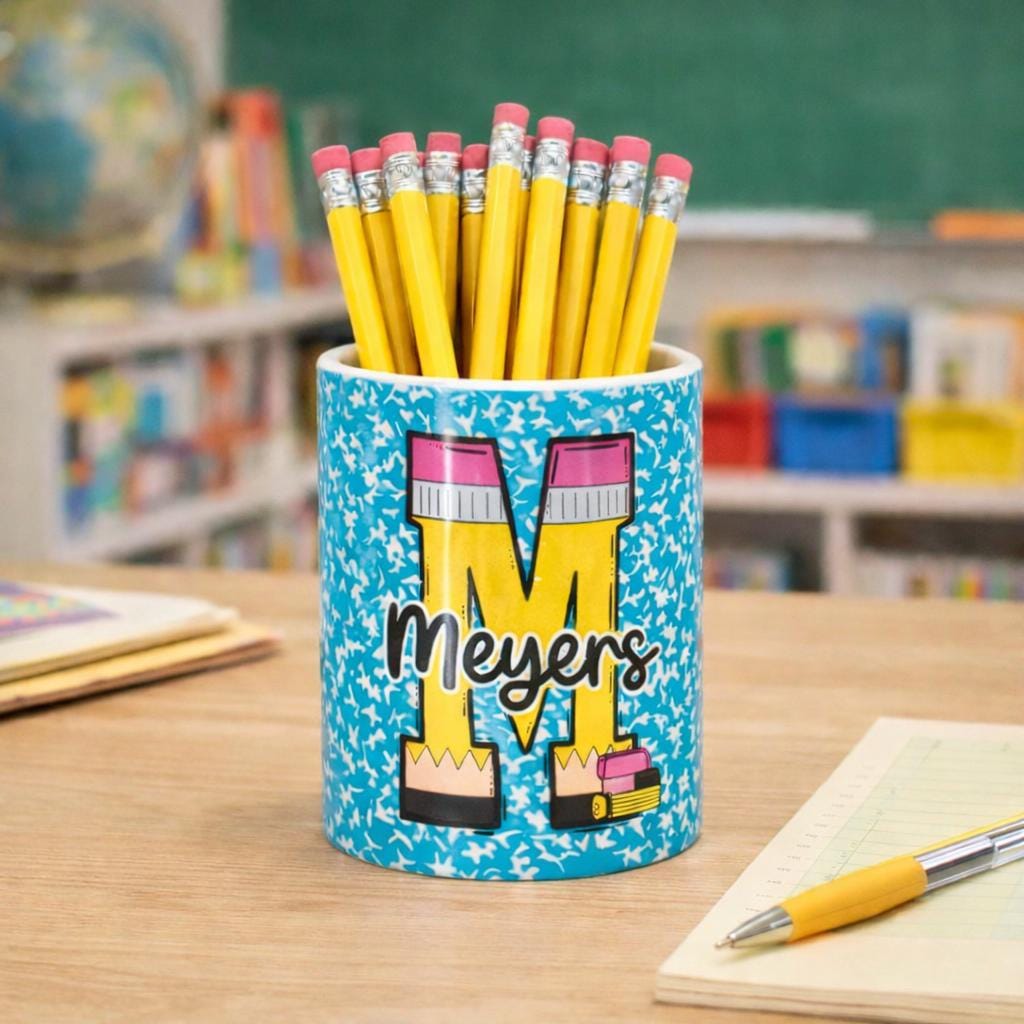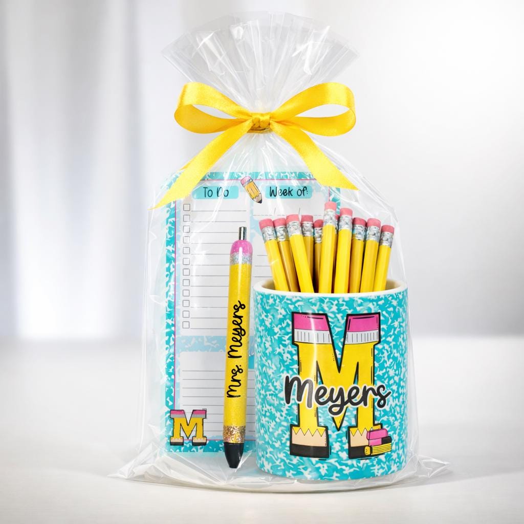 Each piece is customized with the teacher’s name and design style, creating a practical and meaningful gift teachers will use every day.