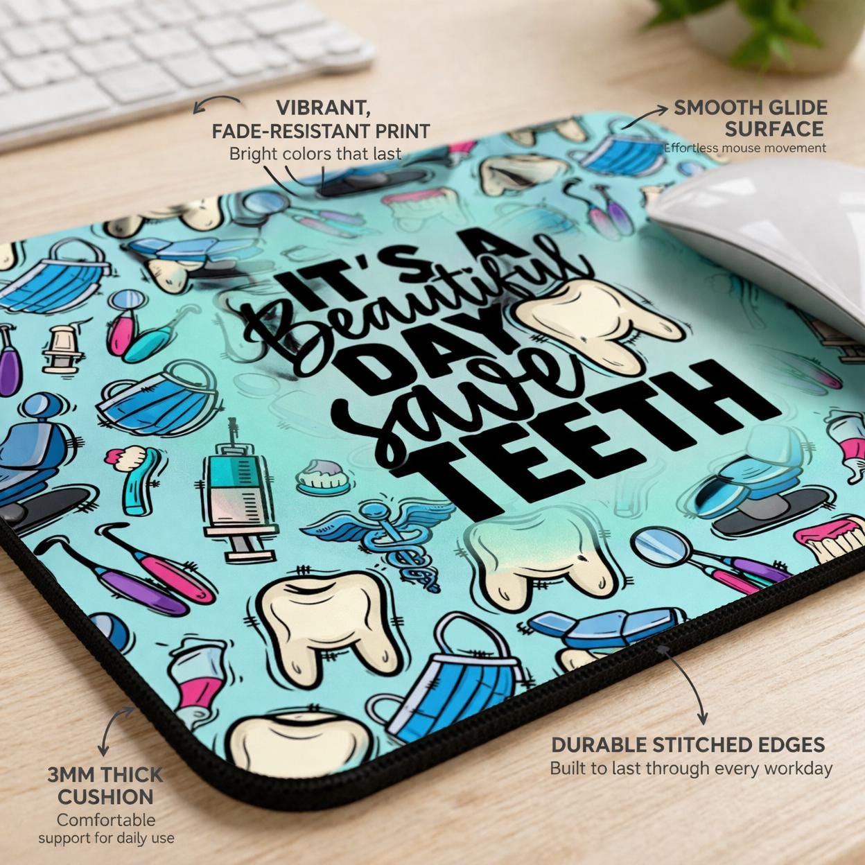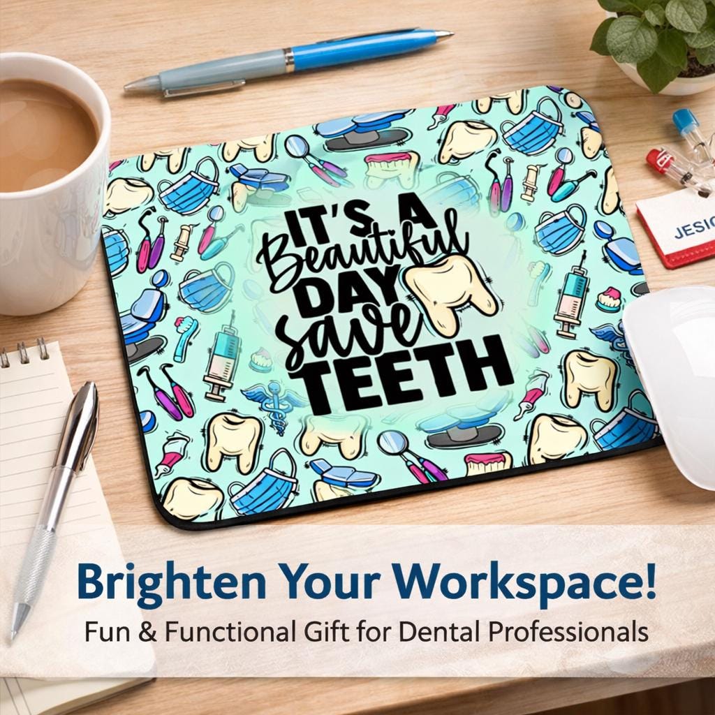 Make every workday a little more fun with this adorable dental-themed mouse pad — perfect for hygienists, dentists, assistants, and dental students who love adding personality to their desk 💙