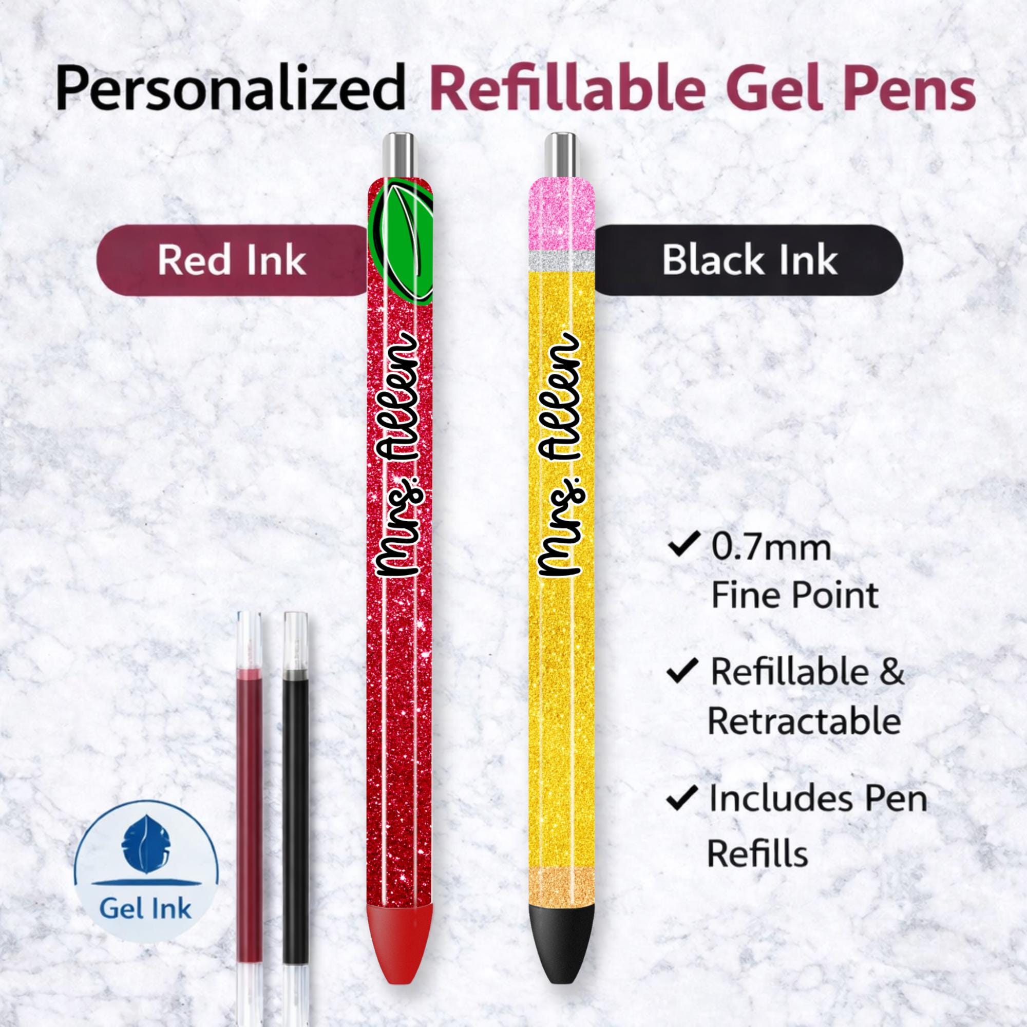 ✔ 2 Handmade Glitter Epoxy Pens (refillable gel ink)
