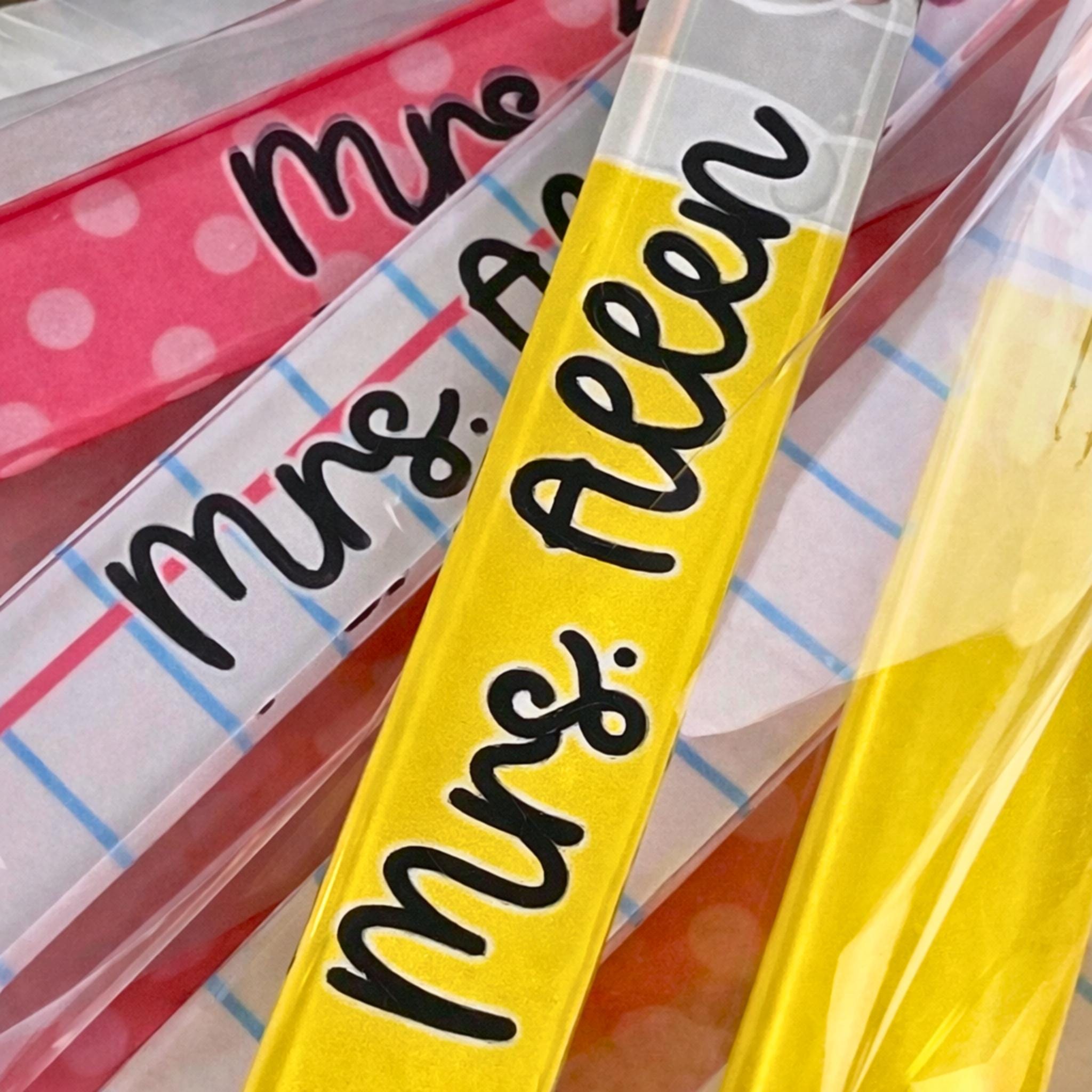 Each bookmark is handmade and customized with the teacher’s name, creating a unique keepsake they’ll actually use and love.