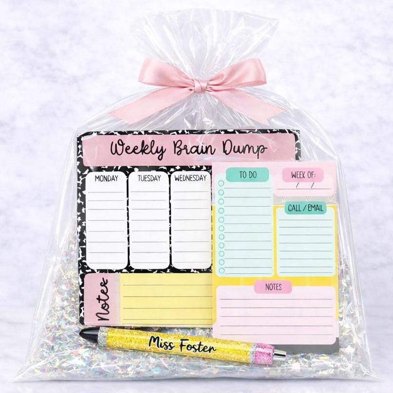 Make your favorite teacher feel truly appreciated with a handmade, personalized gift set designed to keep their week organized and their desk looking beautiful.