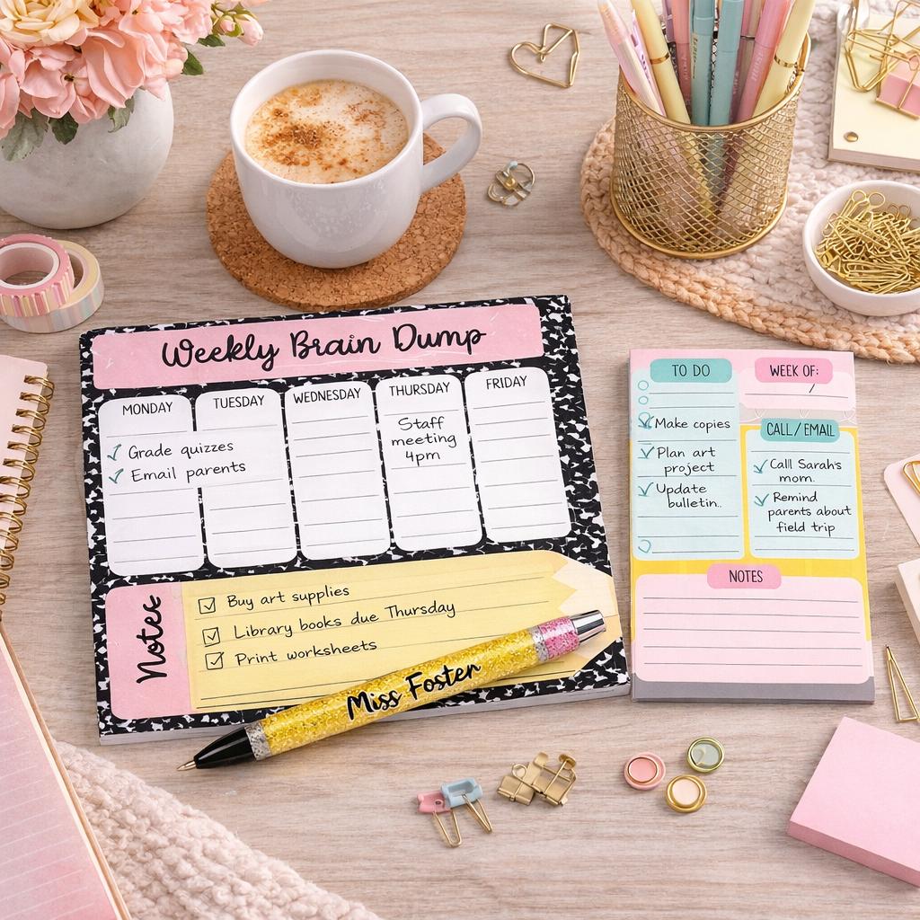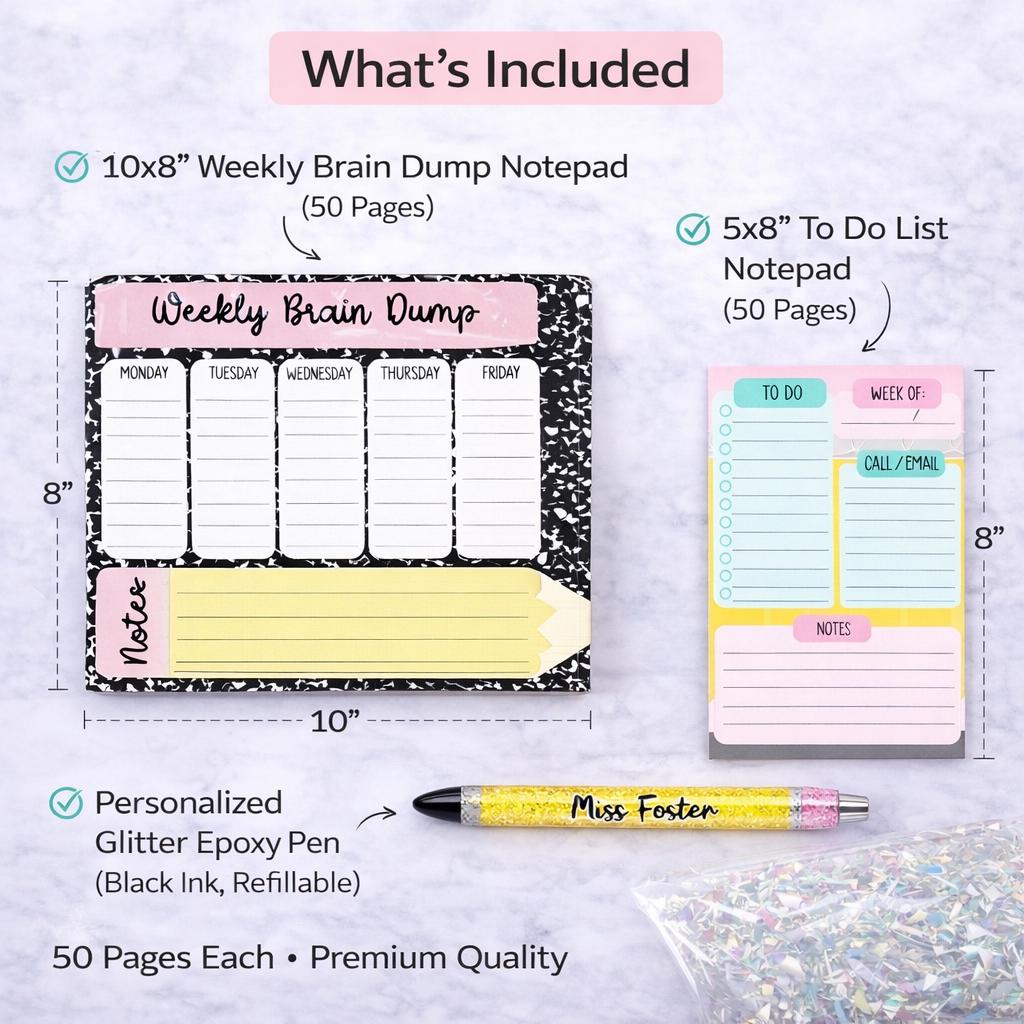 ✔ 10” x 8” Weekly Brain Dump Notepad (50 pages)