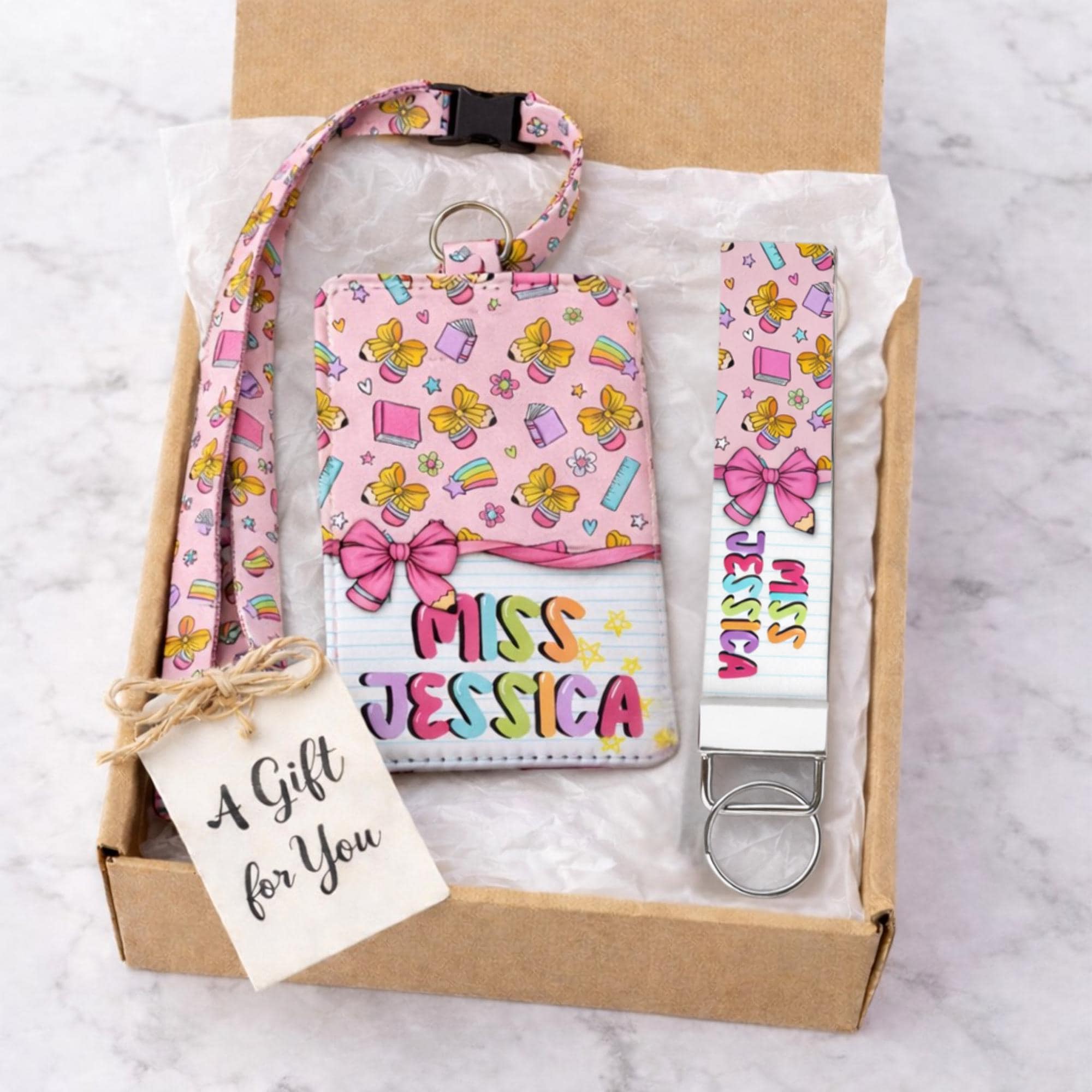 This custom teacher lanyard set is the perfect mix of cute + functional — designed to keep your essentials secure while showing off your personality.