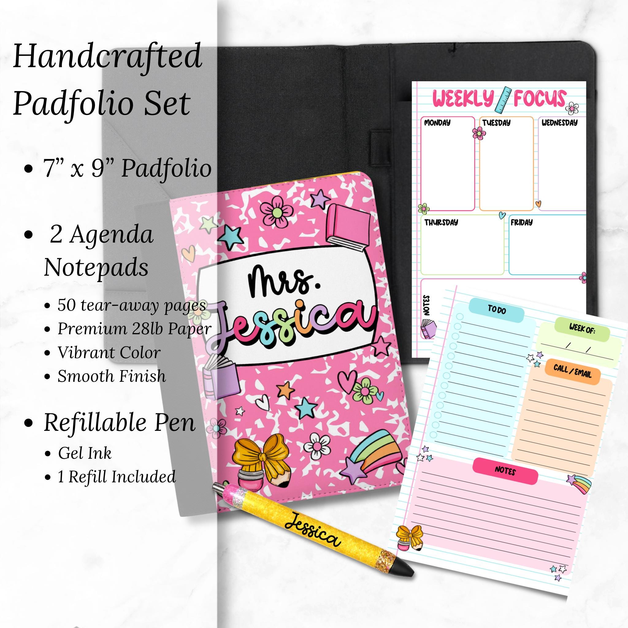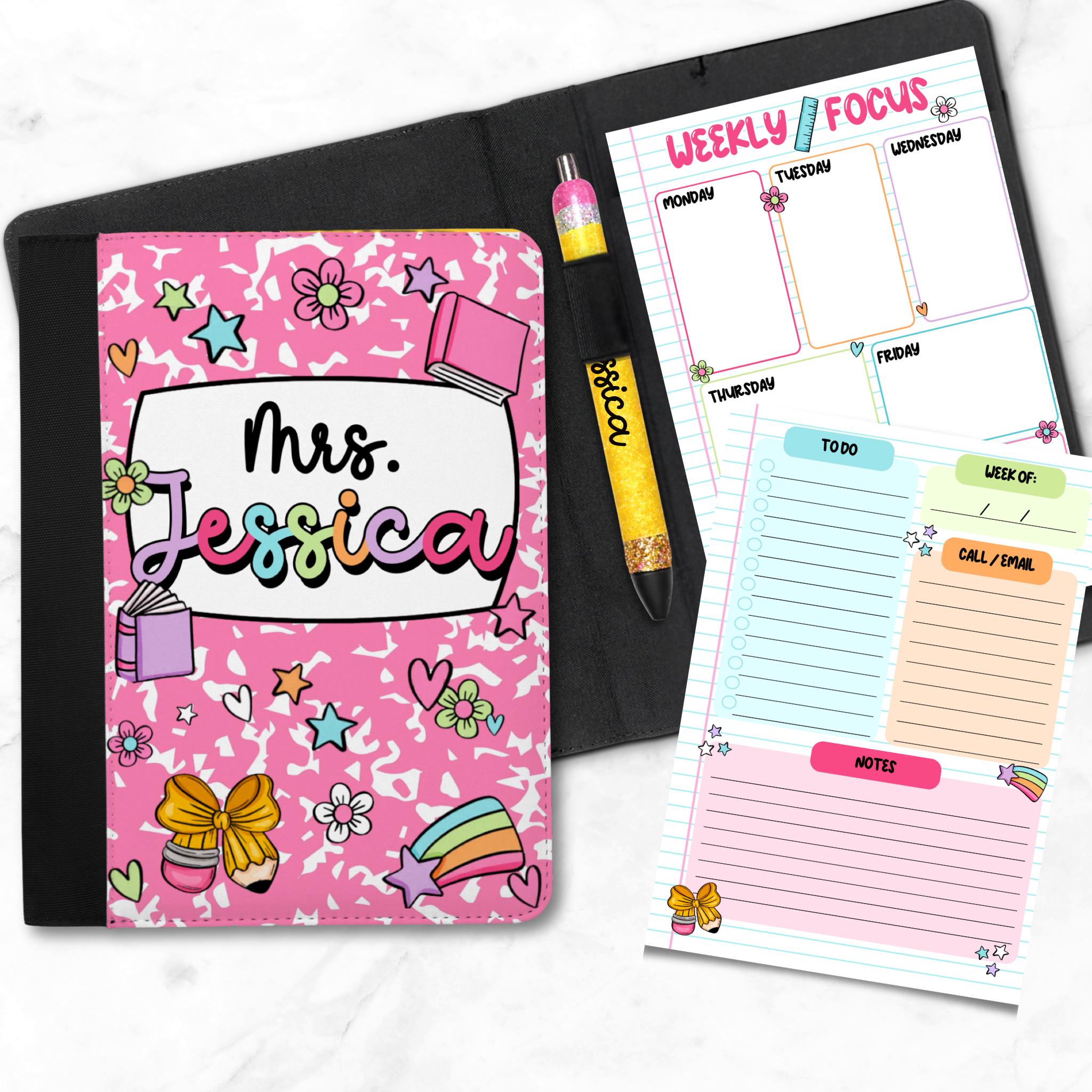 Make any teacher feel extra special with this custom handcrafted padfolio set, designed to keep their week organized in style. Perfect for Teacher Appreciation, Back to School, Christmas, or End-of-Year gifts.