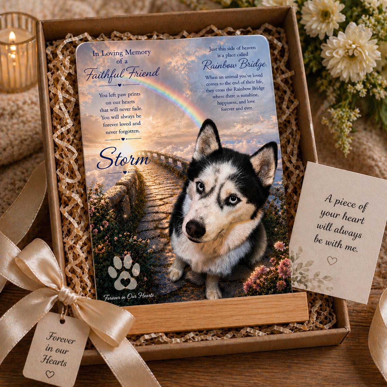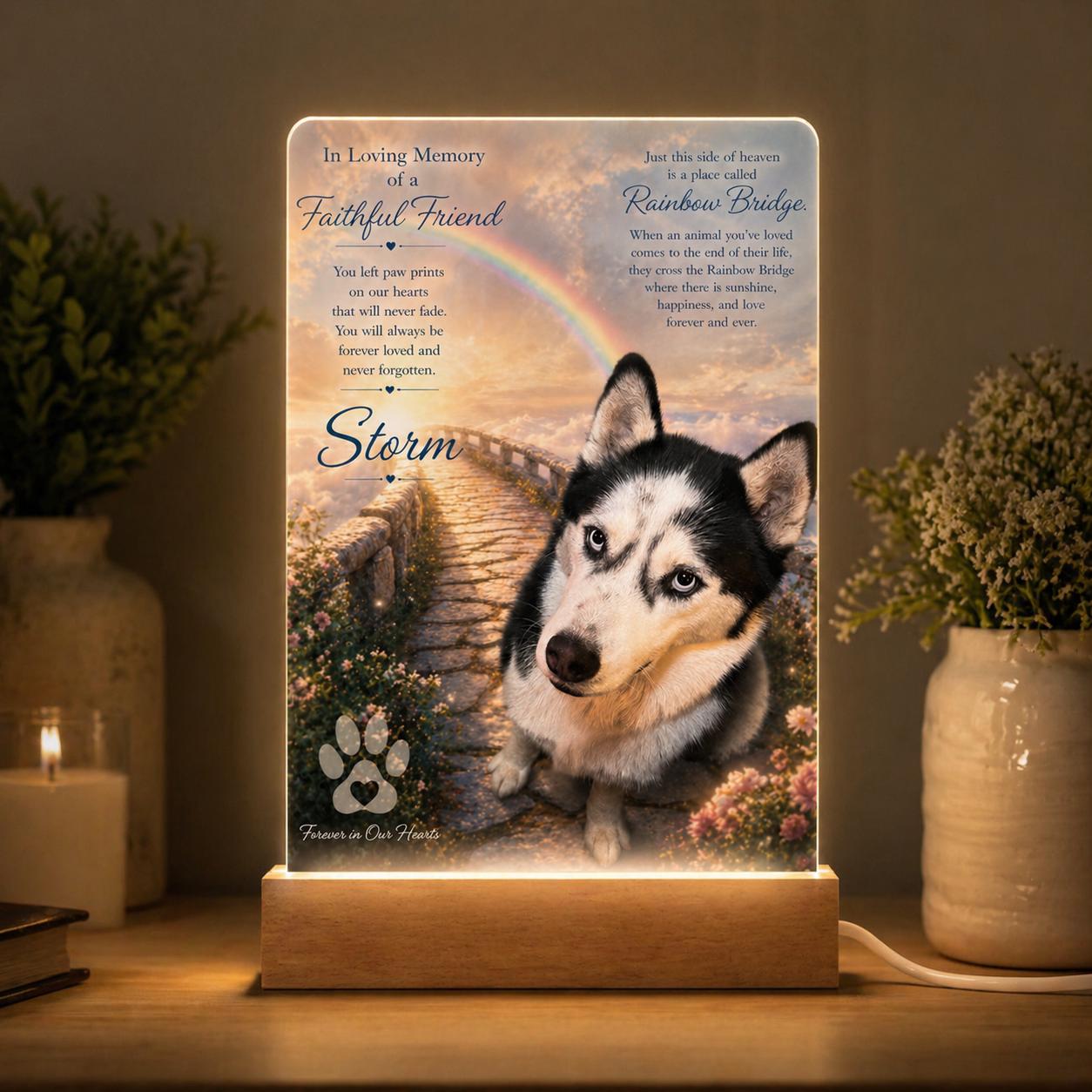 Honor your beloved companion with a personalized Rainbow Bridge memorial light—a heartfelt keepsake that brings comfort, warmth, and lasting love.